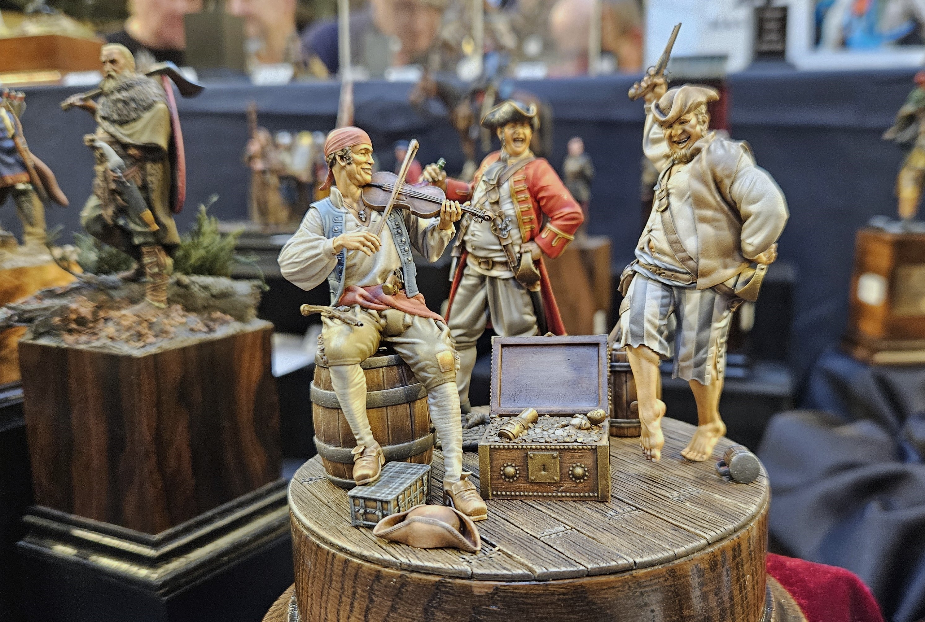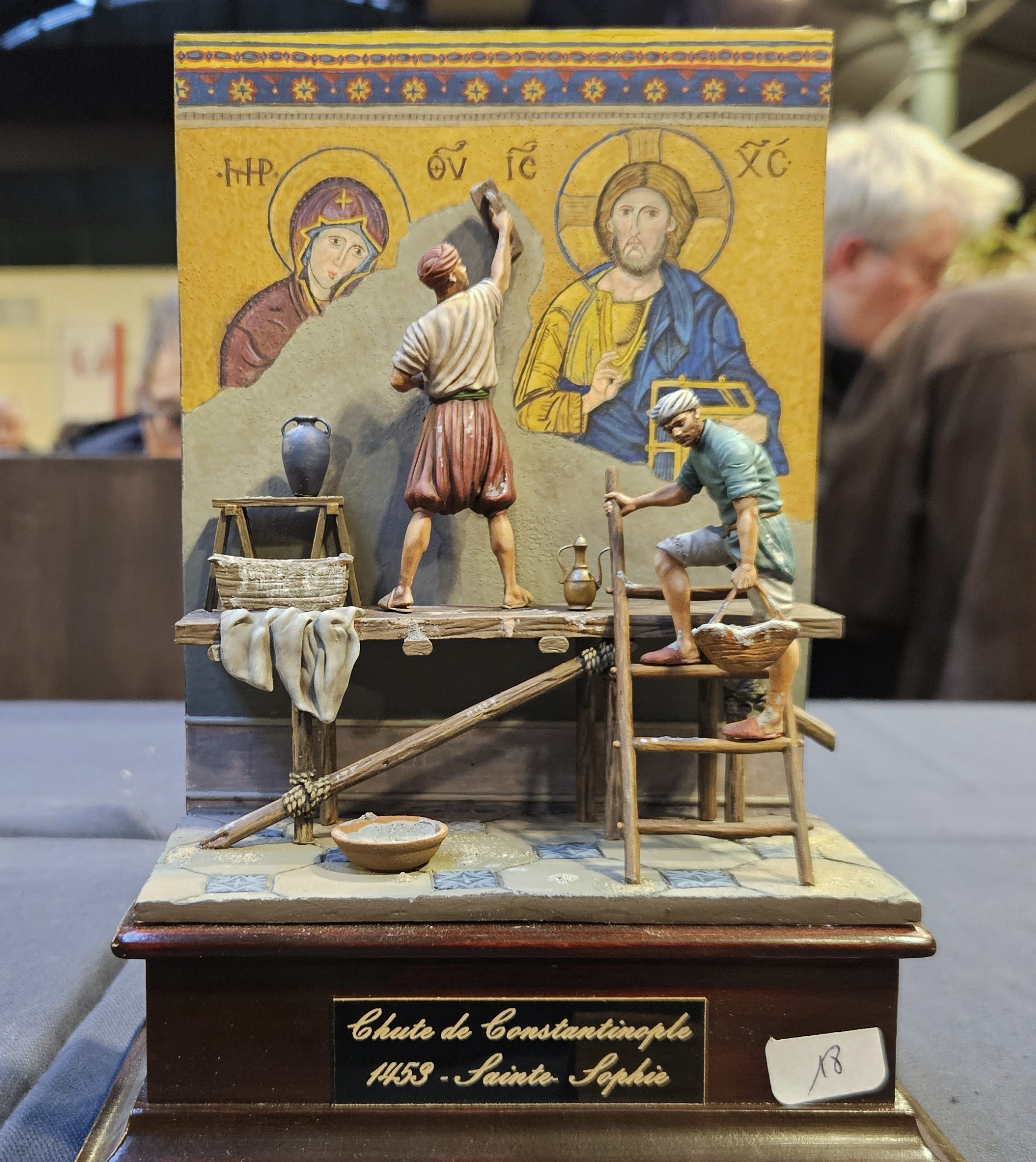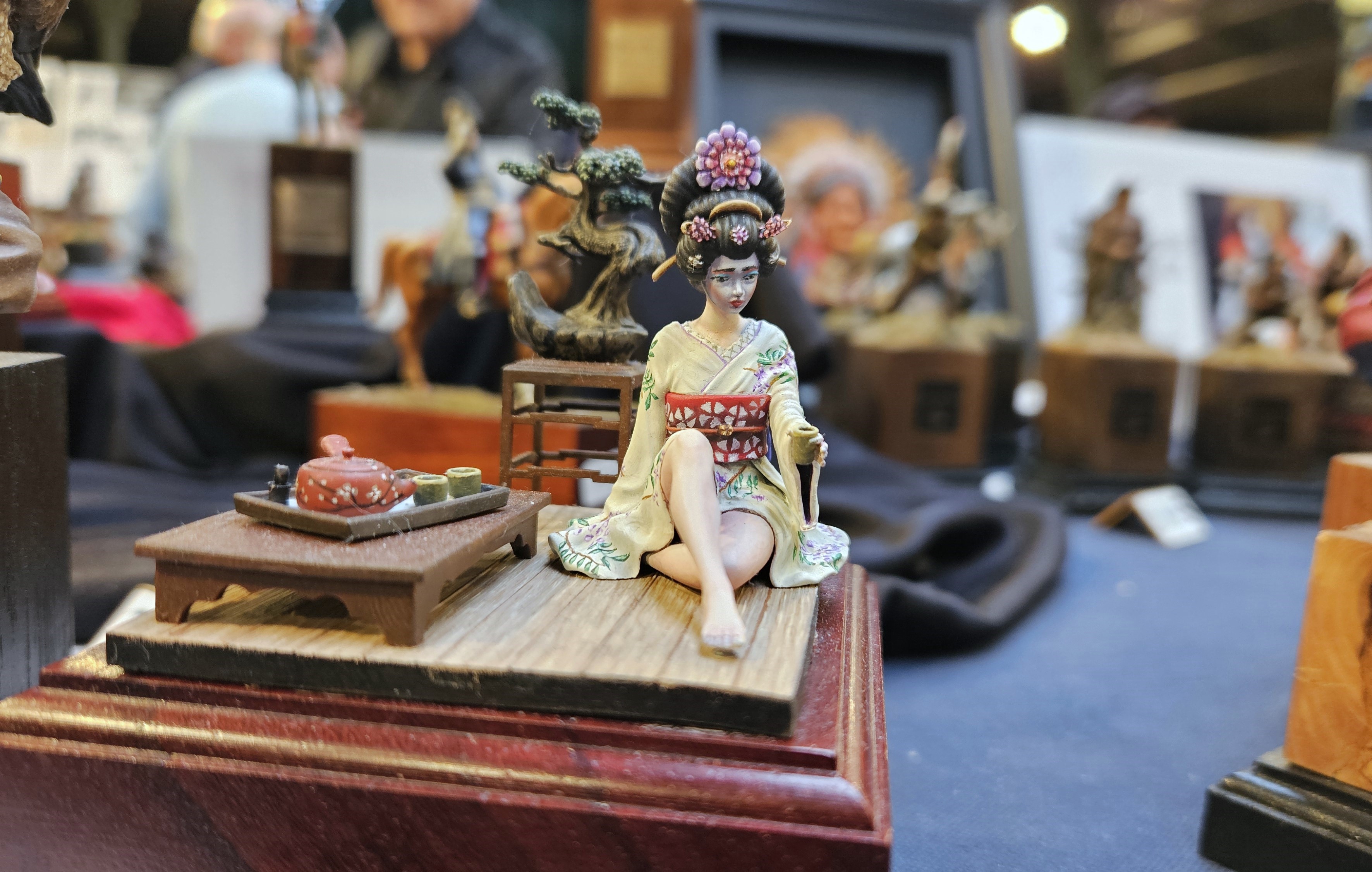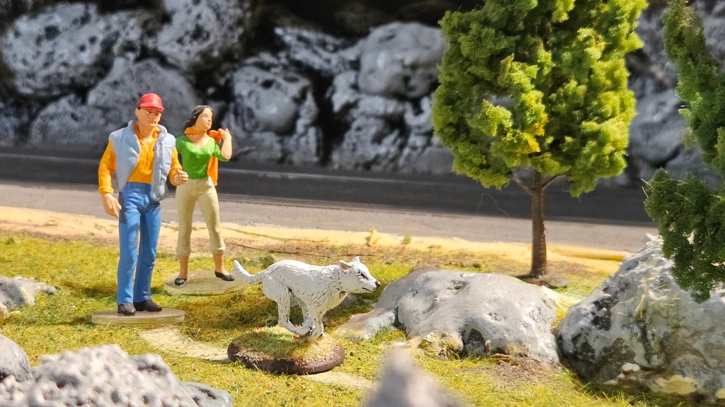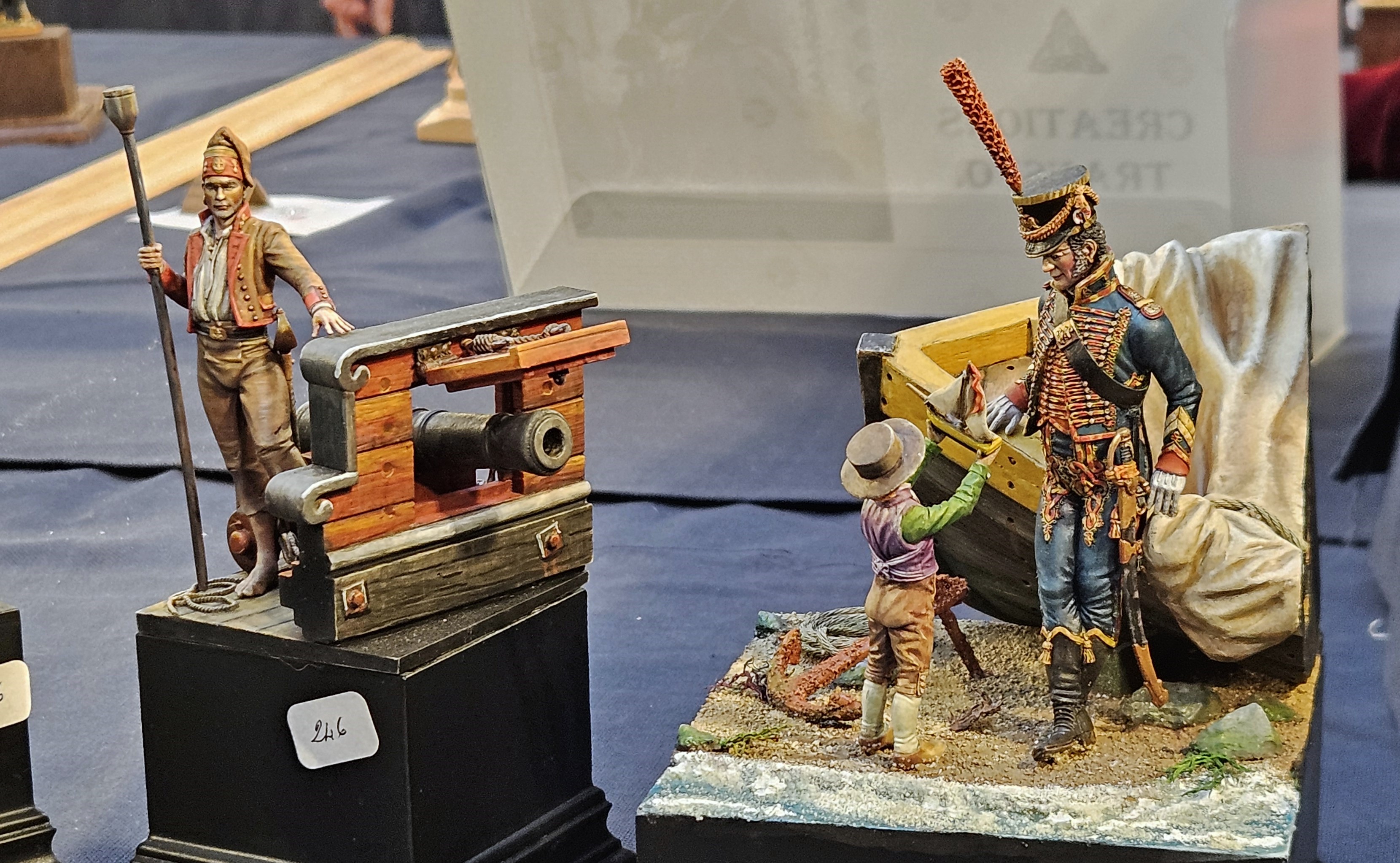 J’ai mis le personnage en situation sur fond de paysage écossais… et installé sur un socle bricolé à partir de l’étui d’une (très bonne) bouteille de Highland 18 ans !