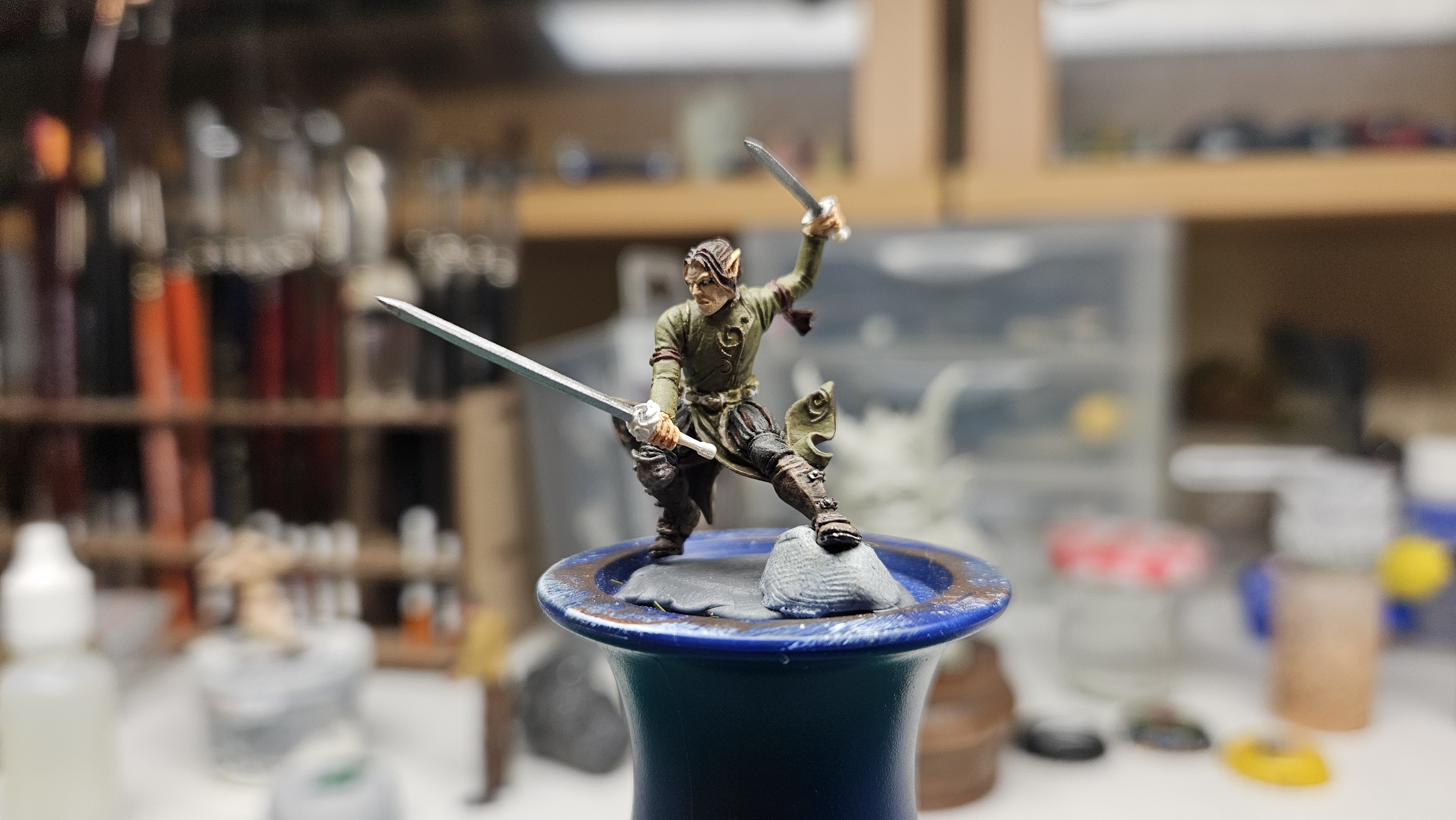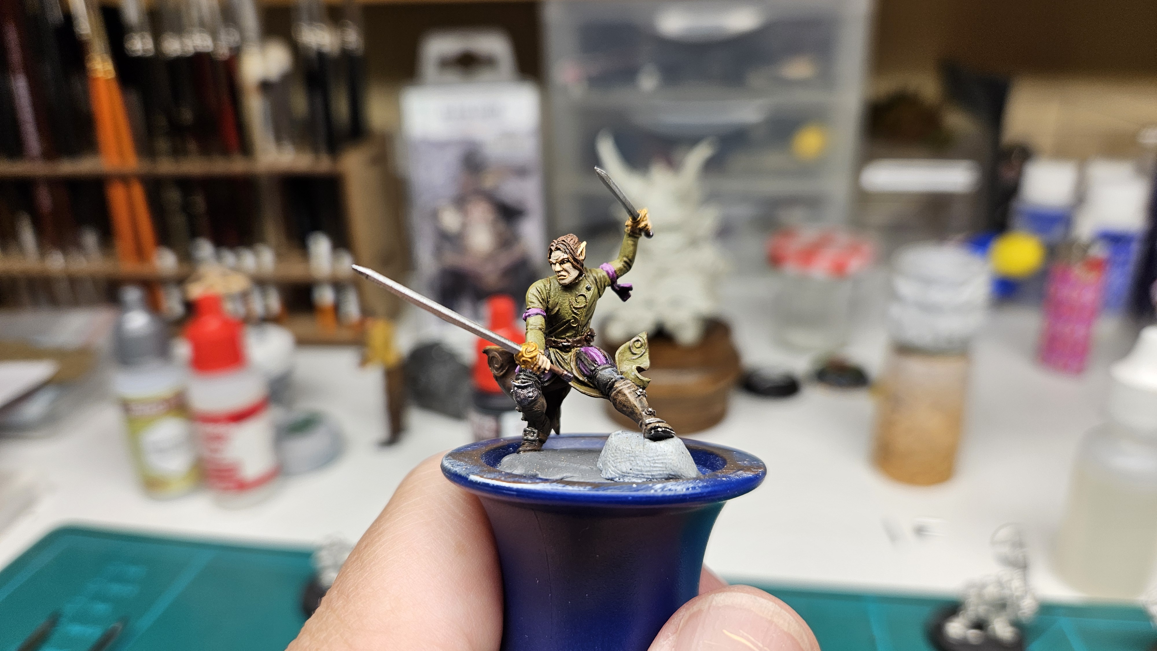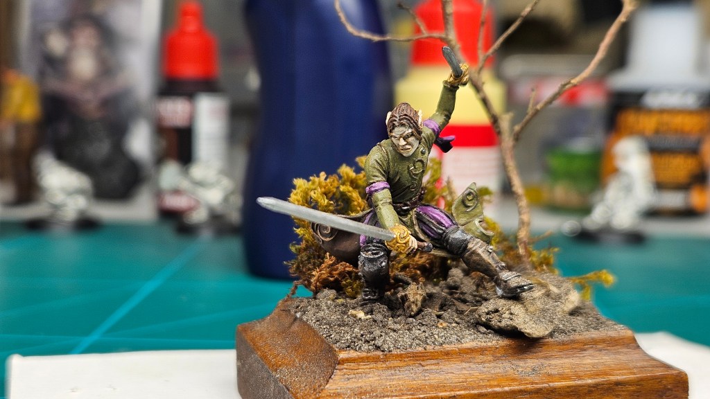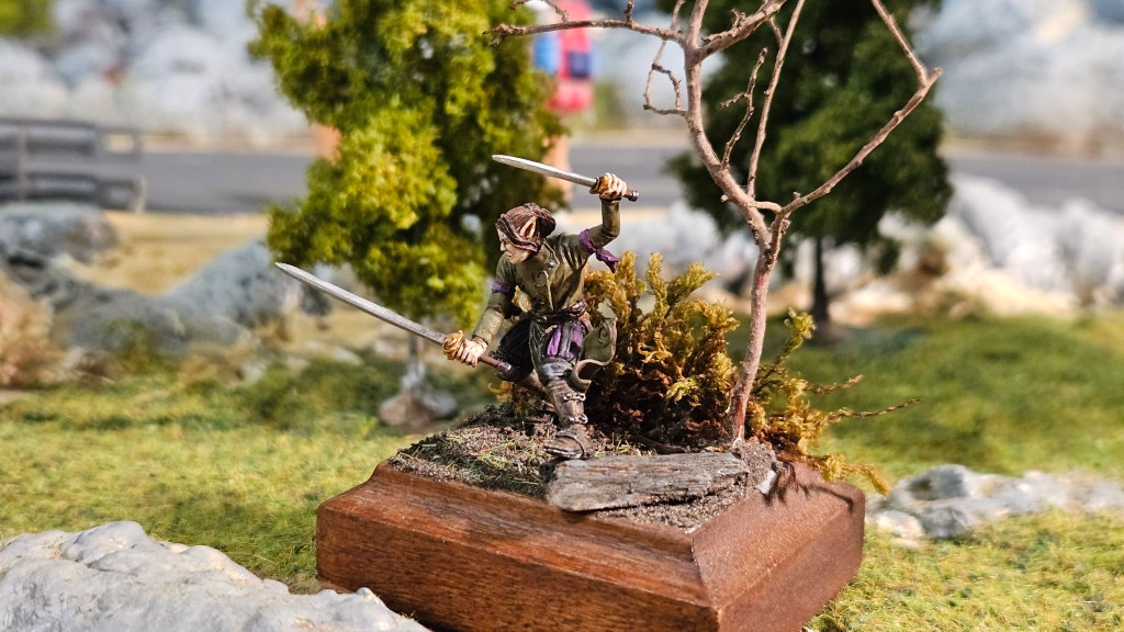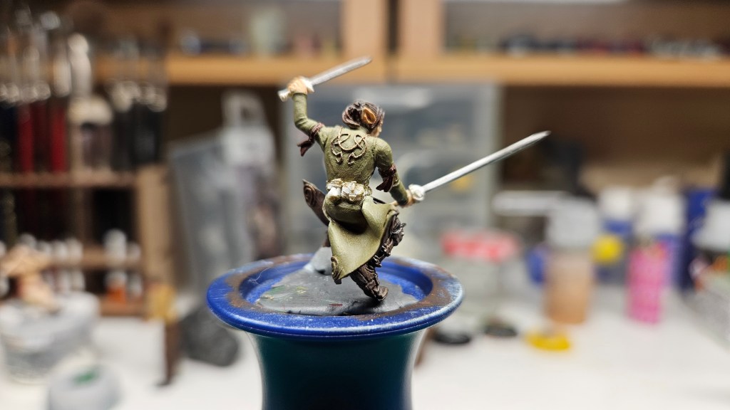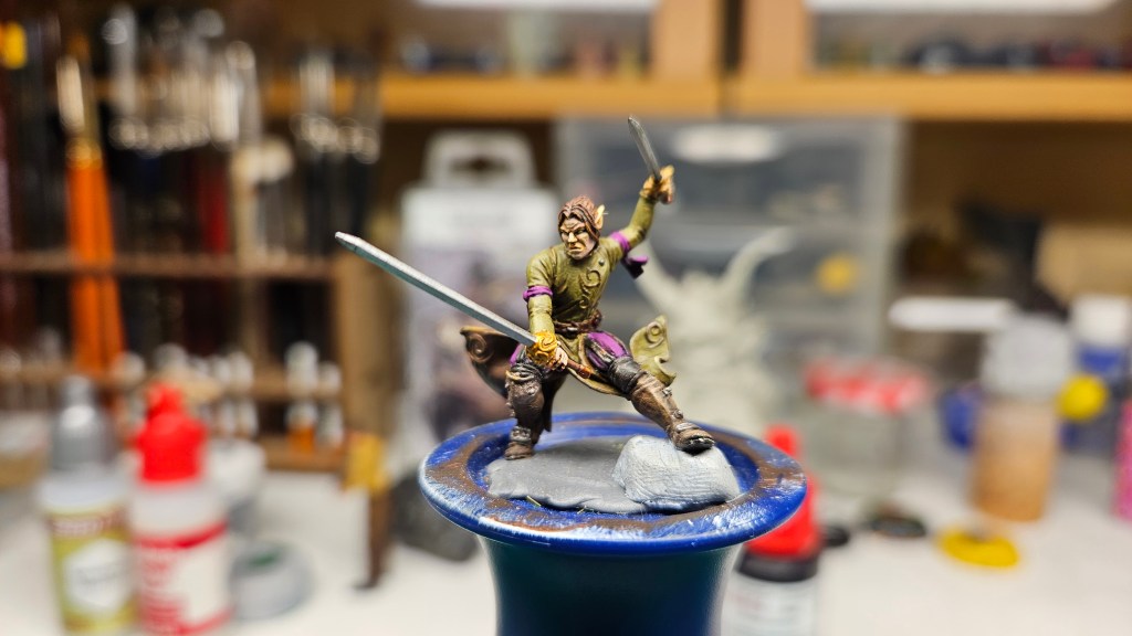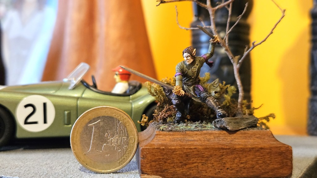 Plus de 12 ans à trôner sur mon bureau sans que j’ose y toucher ! 😀 J’ai enfin terminé la peinture d’Elrick, l’elfe mercenaire, minuscule, que j’avais commencé à peindre en… juin 2013 (!!) lors d’un figostage avec Martin Grandbarbe.