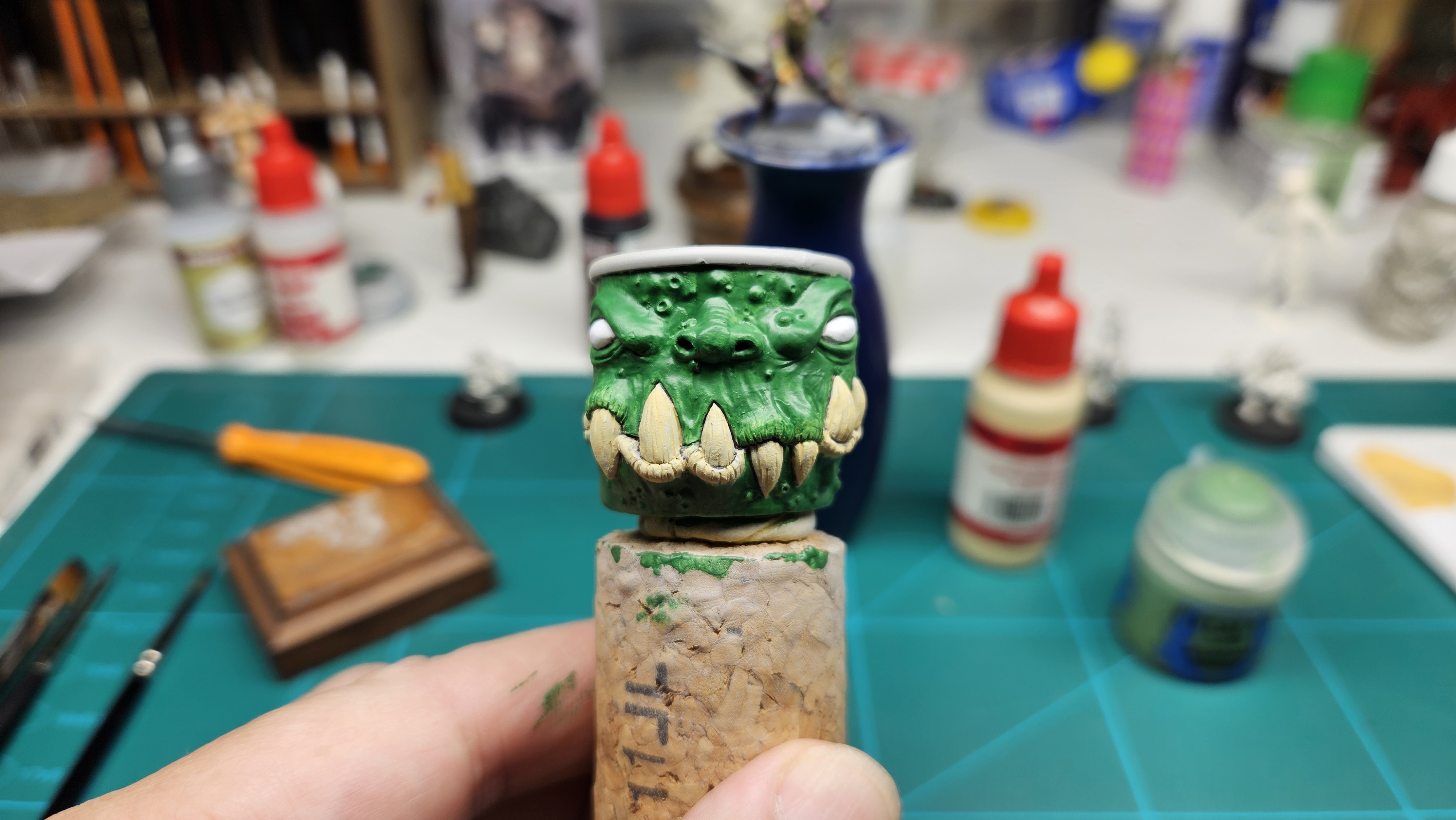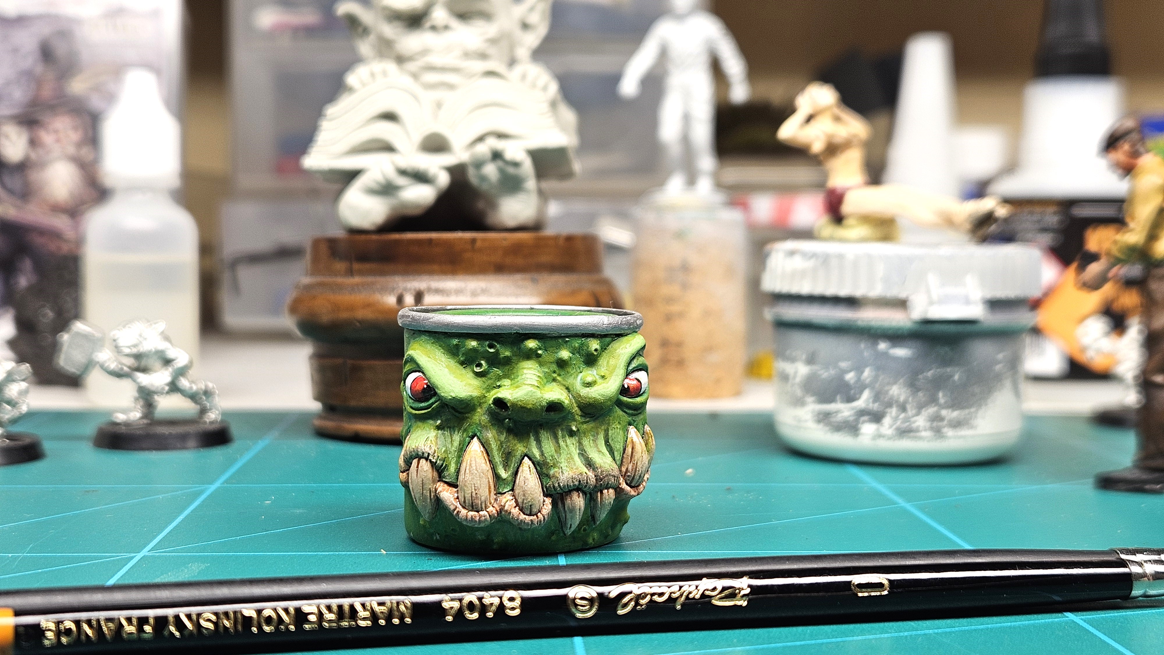 Monstropot veille désormais sur l’atelier de miniatures d’Olivier Fantasy.