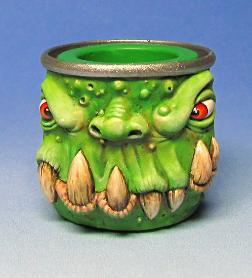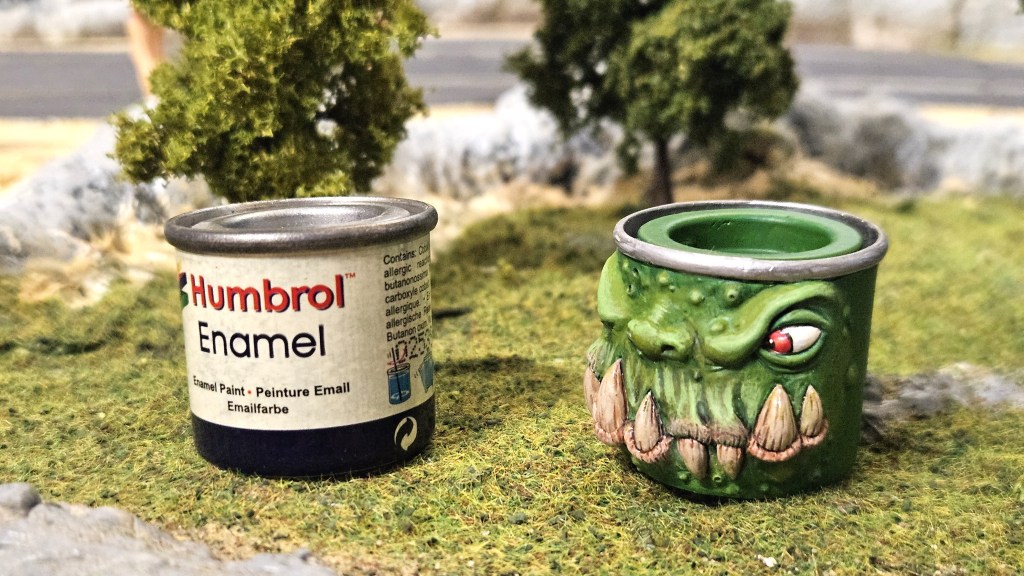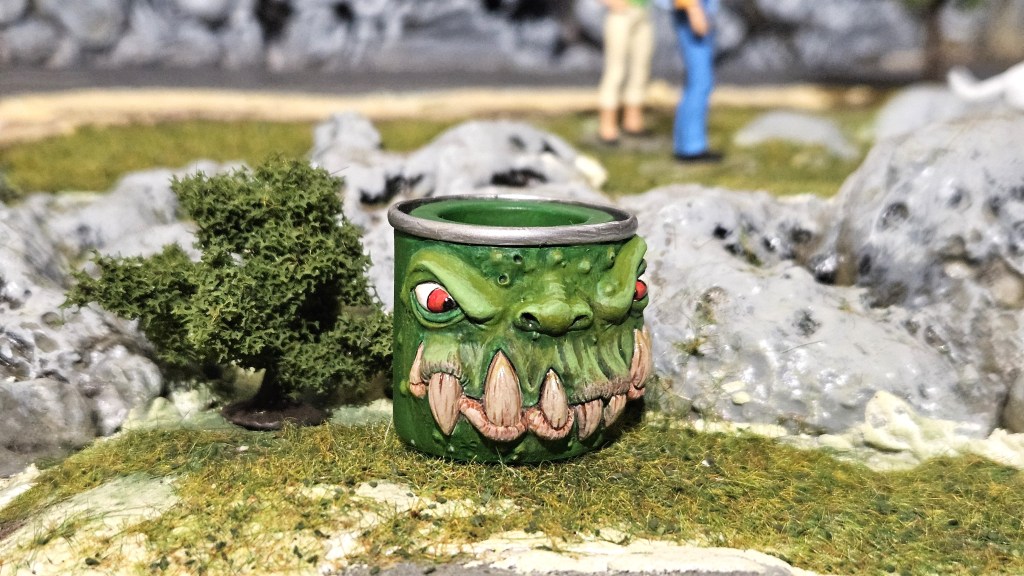 Encore un figurine de légende, que j’ai sur mon bureau, sous-couchée, depuis… 2013 !!!! 😀 En l’attente du jour lointain où je serai « assez bon pour la peindre » : un Monstropot, de chez Maow Miniatures, le Hum’Troll. Un pot Humbrol en version « monstrifiée » 😉