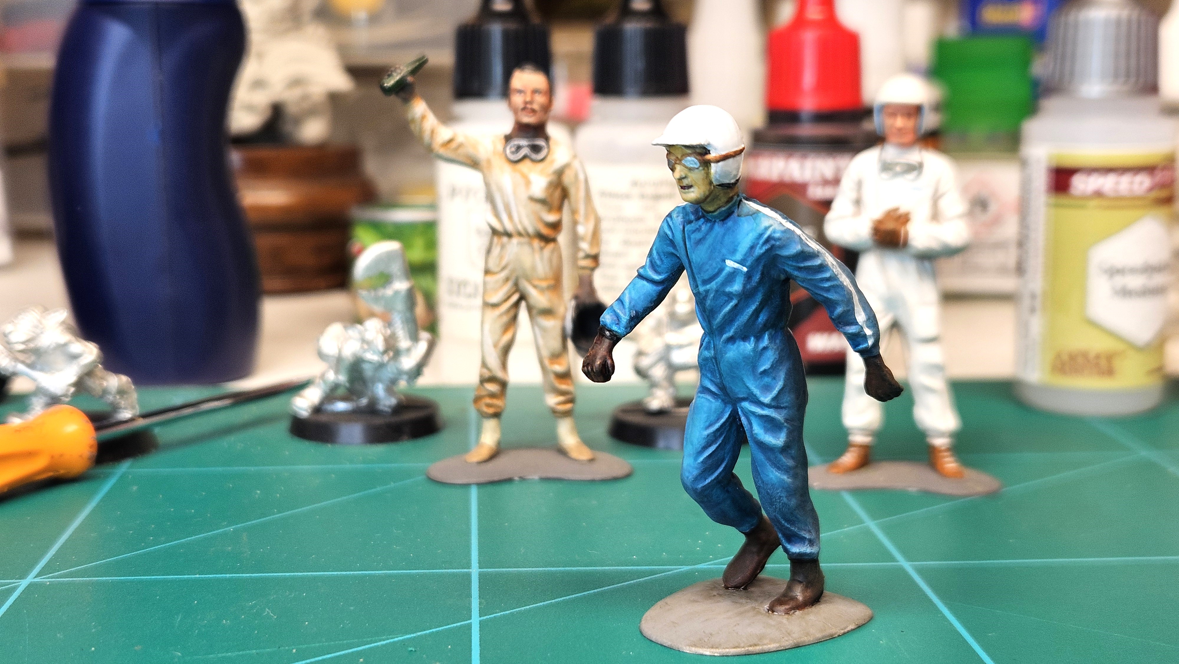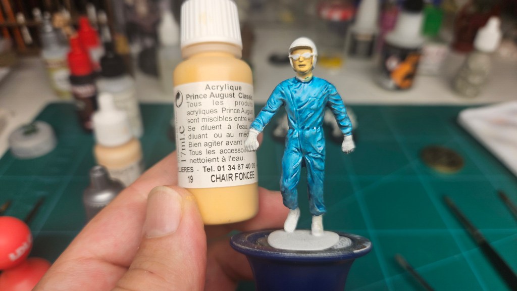 Je n’ai pas trouvé le même bleu ciel que les combinaisons des pilotes de l’époque.