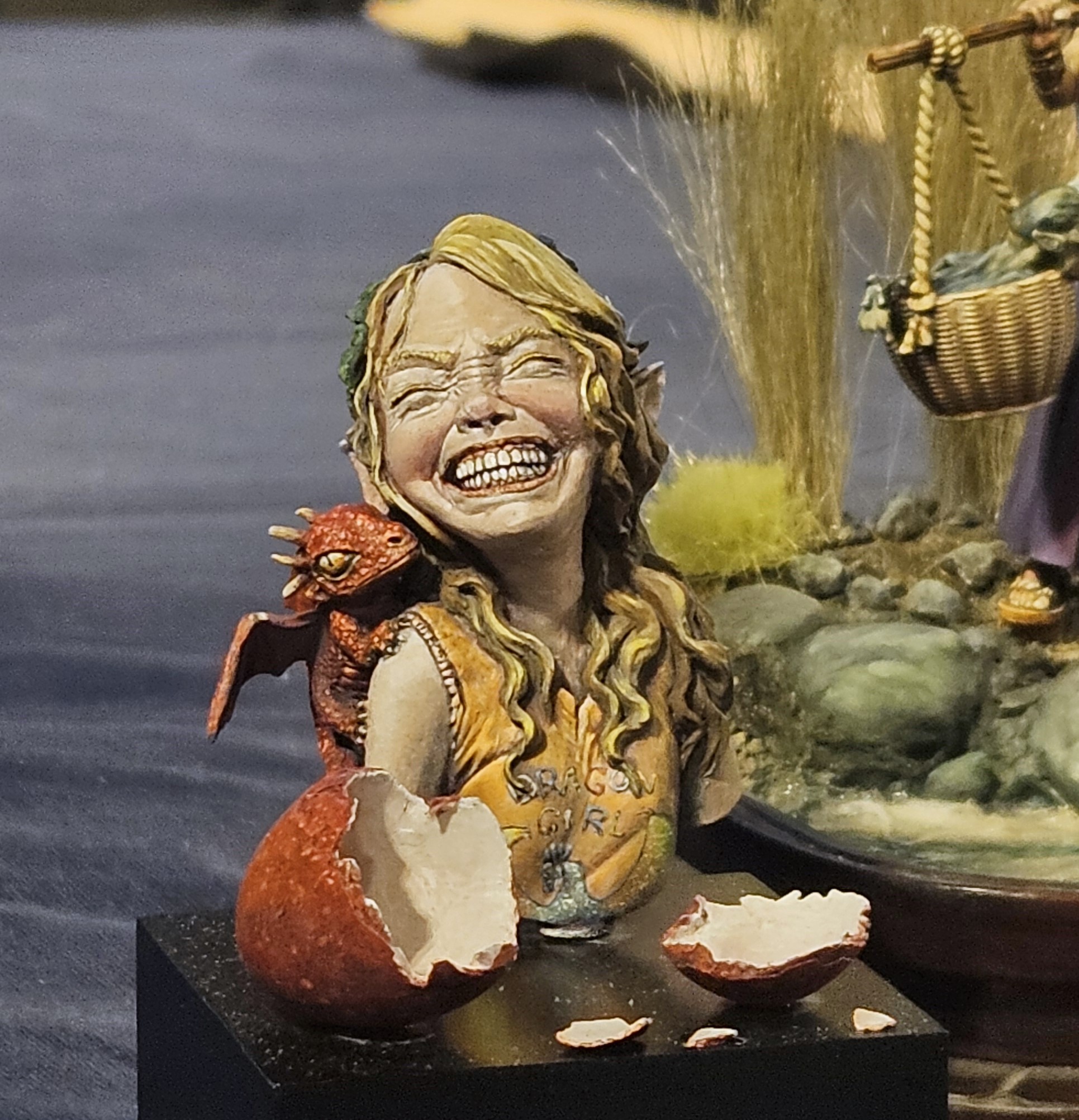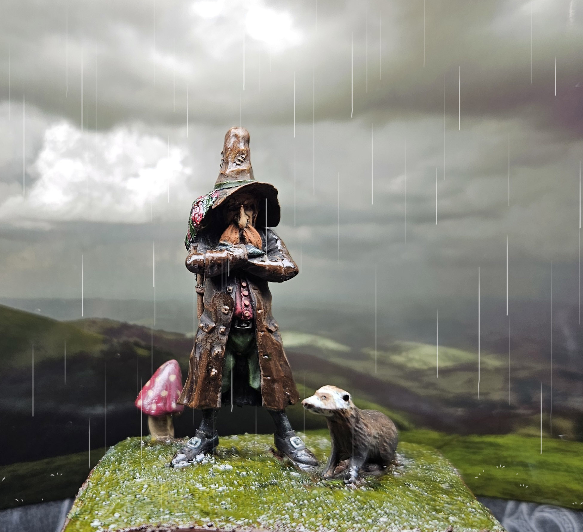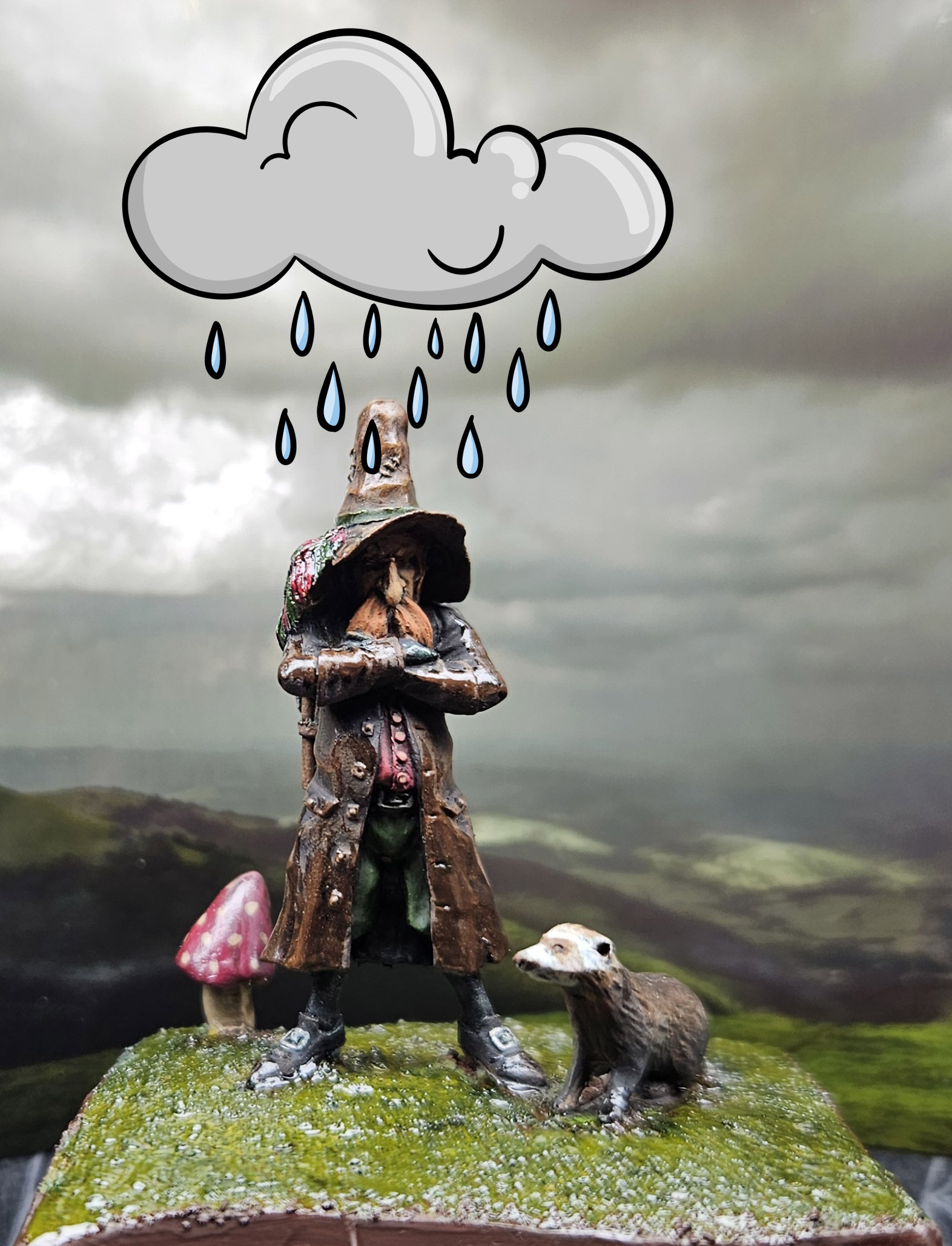 « Rainy Day » est le nom d’un lutin pas content, sculpté par Olivier Bouchet… On devine au titre qu’il fait la tête car il s’est pris une rincée ! 😀
