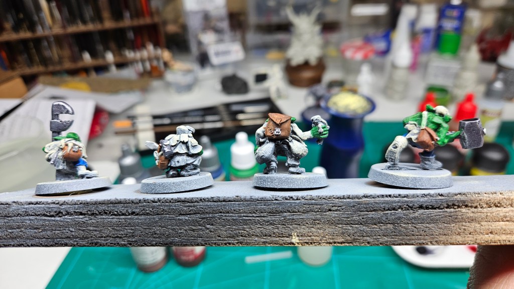 Cela faisait longtemps que je les avais sous le nez, sur mon bureau… Je pensais qu’ils seraient faciles et rapides à peindre : que nenni !!! C’est plein de détails, ces petites choses-là !! 😀