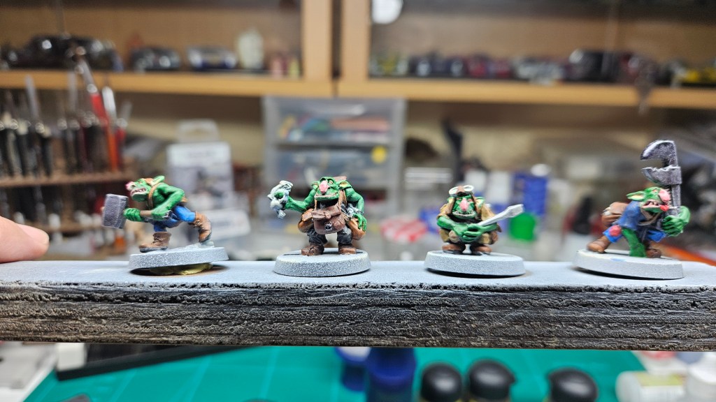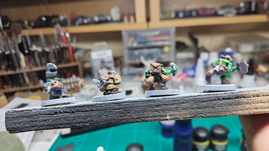 Donc, les belles leçons sur les dégradés, etc. des vidéos de tutos YouTube… ce n’est pas évident à appliquer ! Faut dire qu’ils ont tous des figurines de 54 ou 75mm aussi, c’est peut-être plus facile (et moi, j’ai besoin de « trouver le truc », ce qui n’est pas encore fait !)…