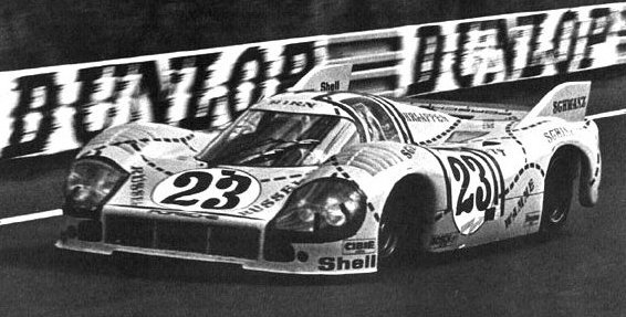 La Porsche 917 Lang Heck #17 qui a battu (à quasi égalité avec la #18, à quatre dixièmes près !!) le record du tour, qui restera invaincu jusqu’en… 2015 !!! Certes, le tracé a changé entretemps (il prend 171m, mais il est peut-être moins rapide ??). Quand même !