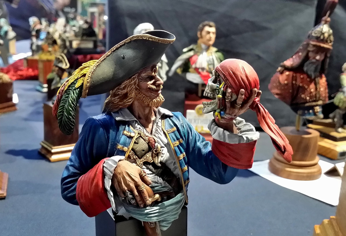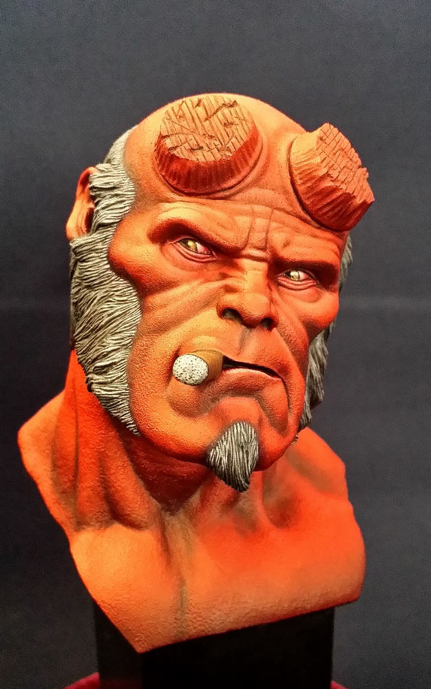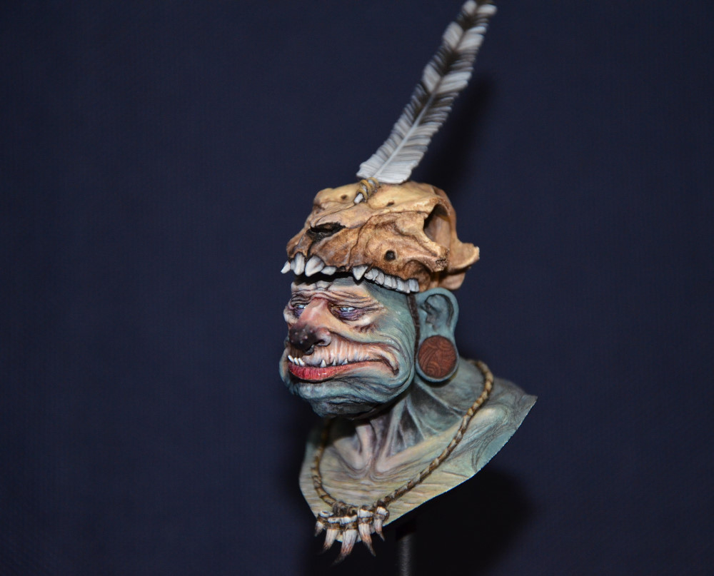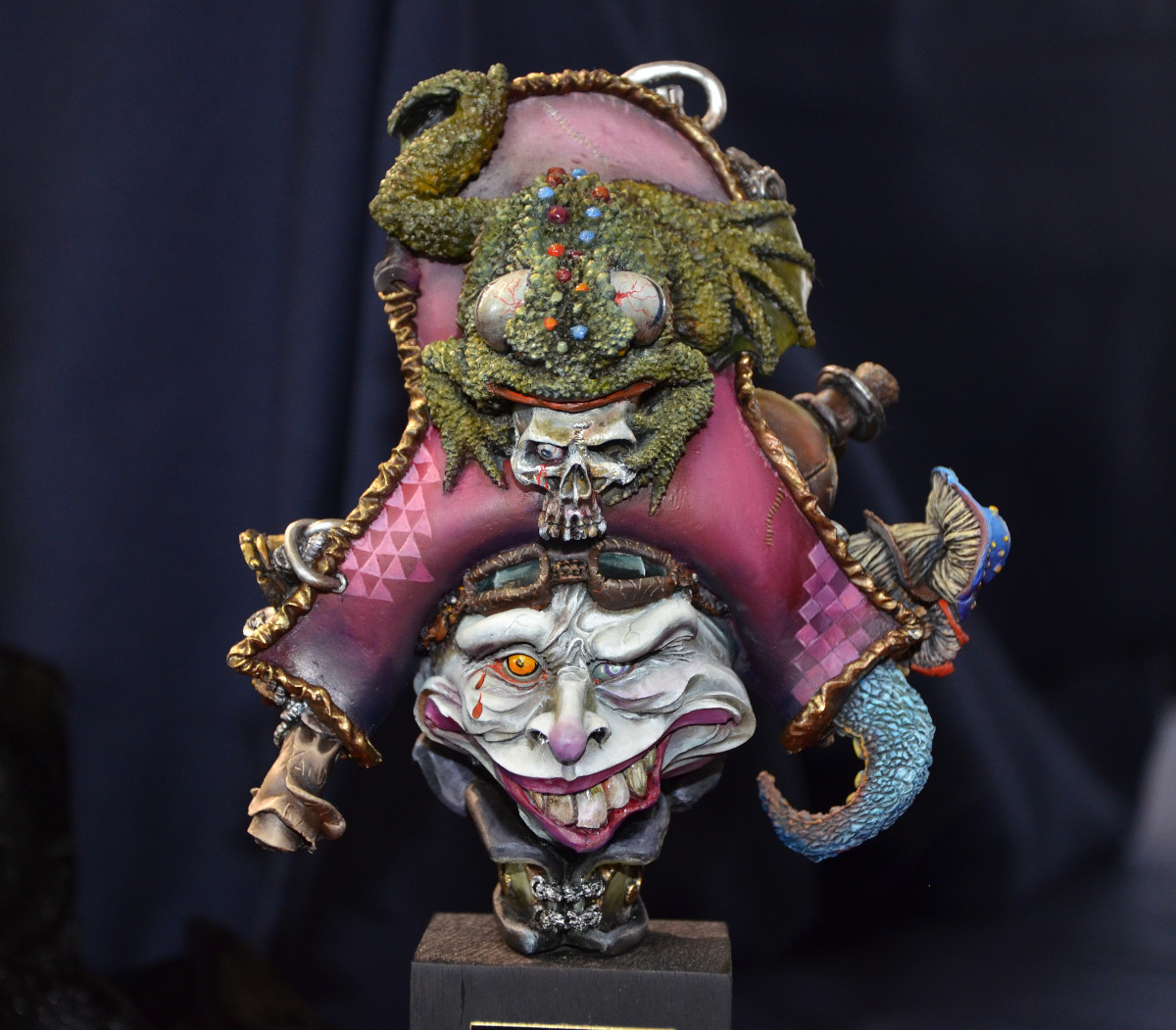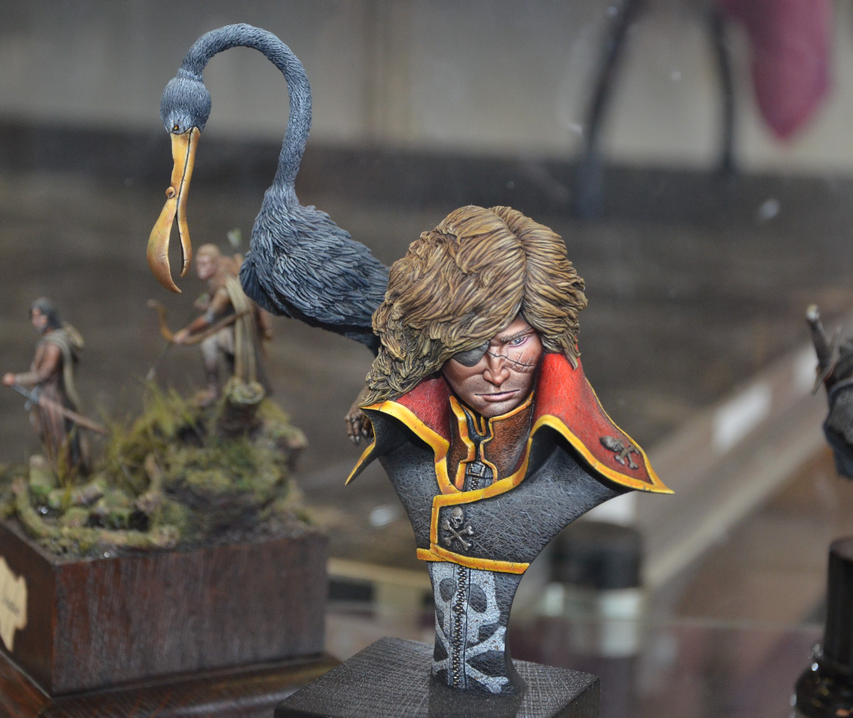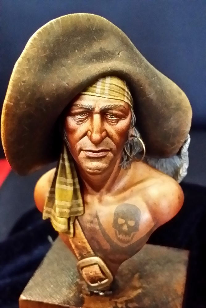 Souvenez-vous que tout ça est de la résine (parfois du métal). Regardez les textures, les nuances de la chair, le crâne derrière… Tout est fait à la peinture. C’est incroyable !
