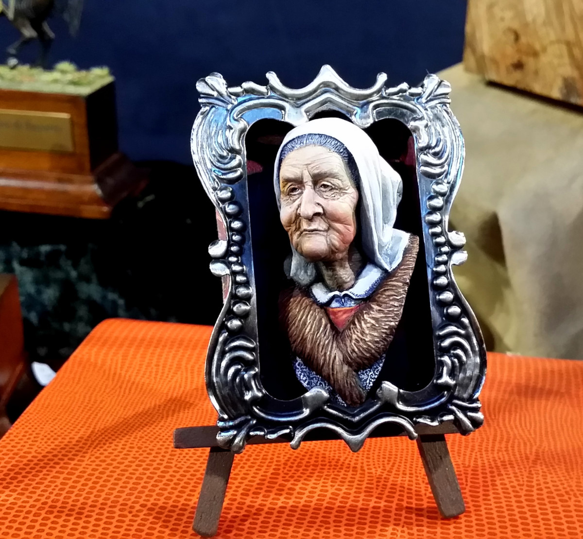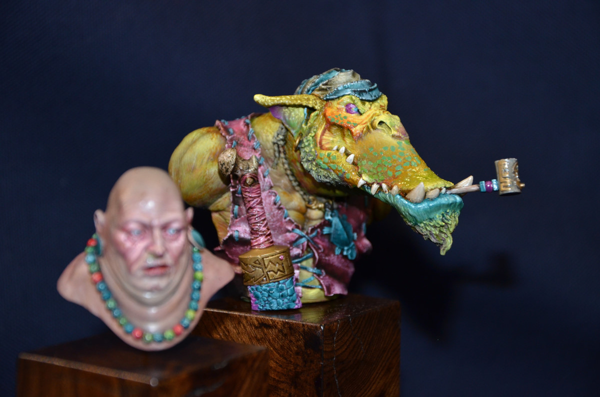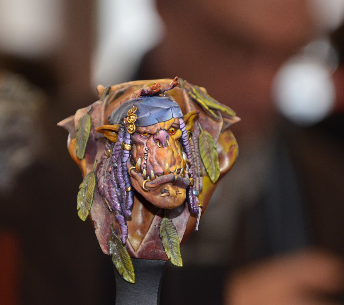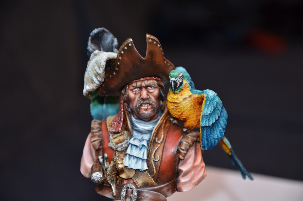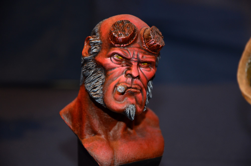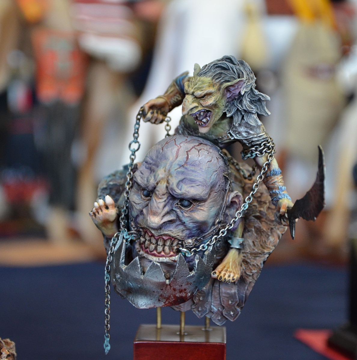 Souvenez-vous que tout ça est de la résine (parfois du métal). Regardez les textures, les nuances de la chair, le crâne derrière… Tout est fait à la peinture. C’est incroyable !