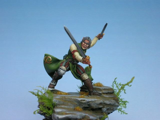Il s’agit d’Elrick, l’elfe noir devenu mercenaire, sculpté par le non moins talentueux Simon Miniature (qui fait des choses exceptionnelles, soit dit en passant !)…