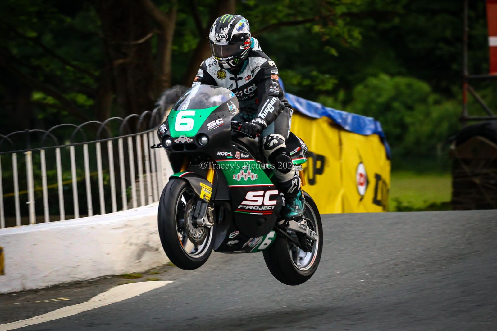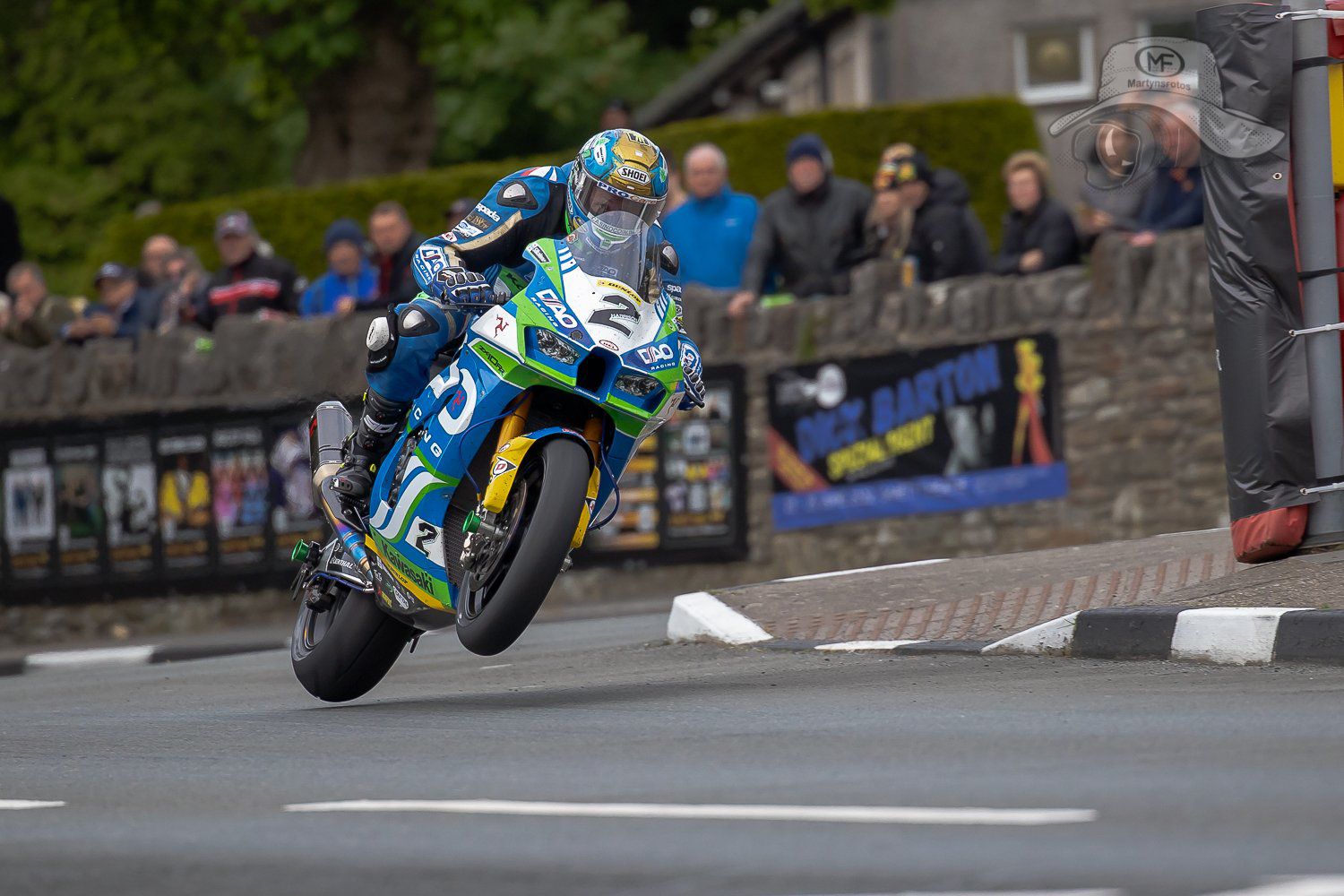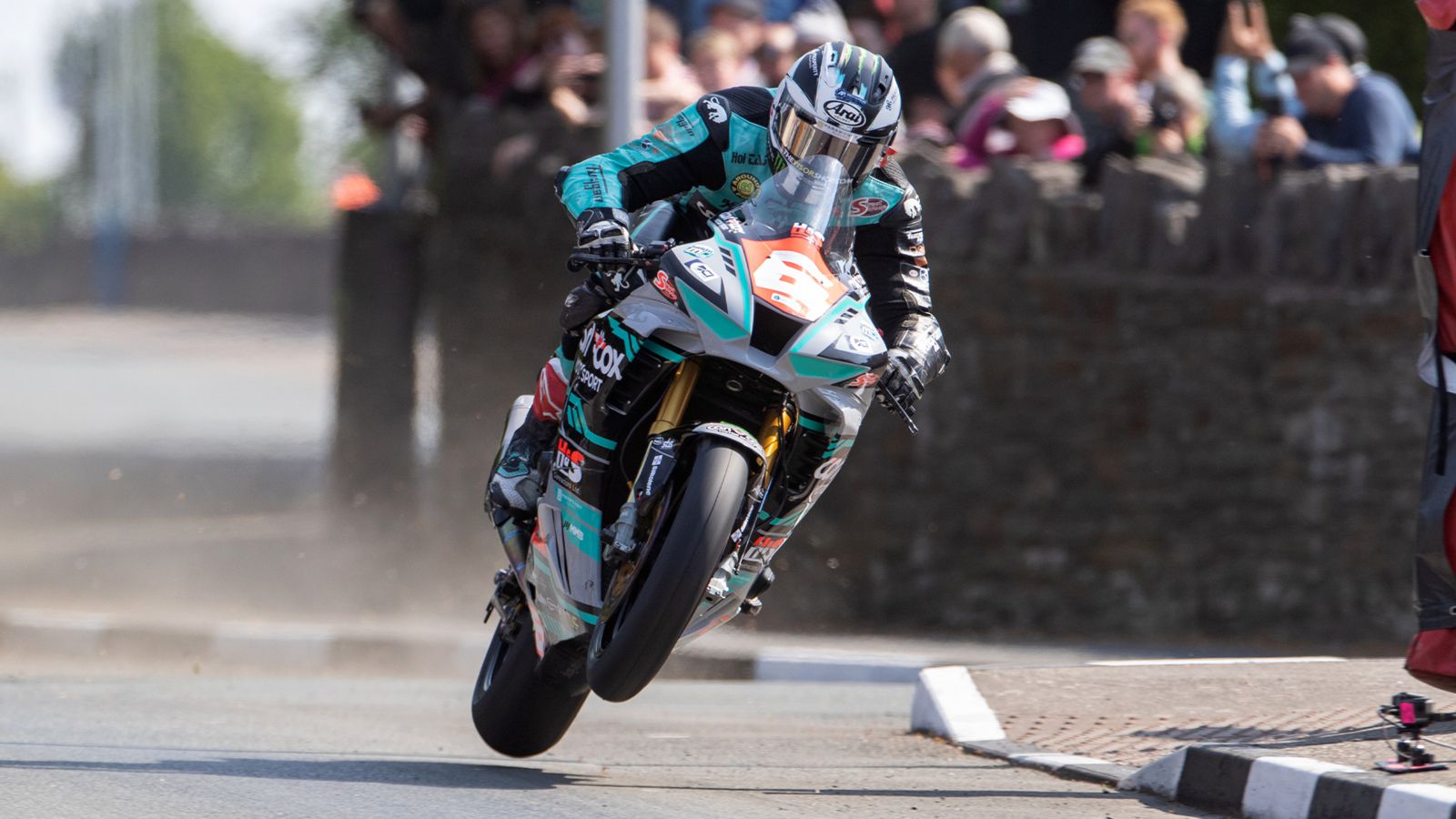 Dean Harrison en plein vol !! (Détenteur du record du tour en Superbike : 216,347km/h !!)