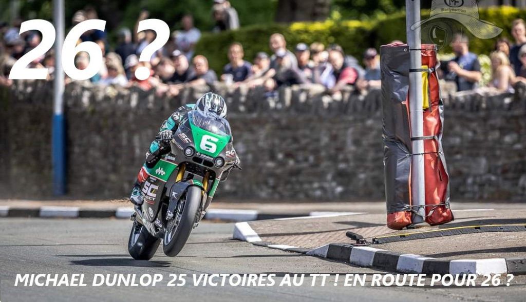 Le TT 2024 commence très fort avec une victoire de Michael Dunlop qui le mène à égalité avec la légende de son oncle Joey : 26 victoires !!! Quelle famille ! 😀