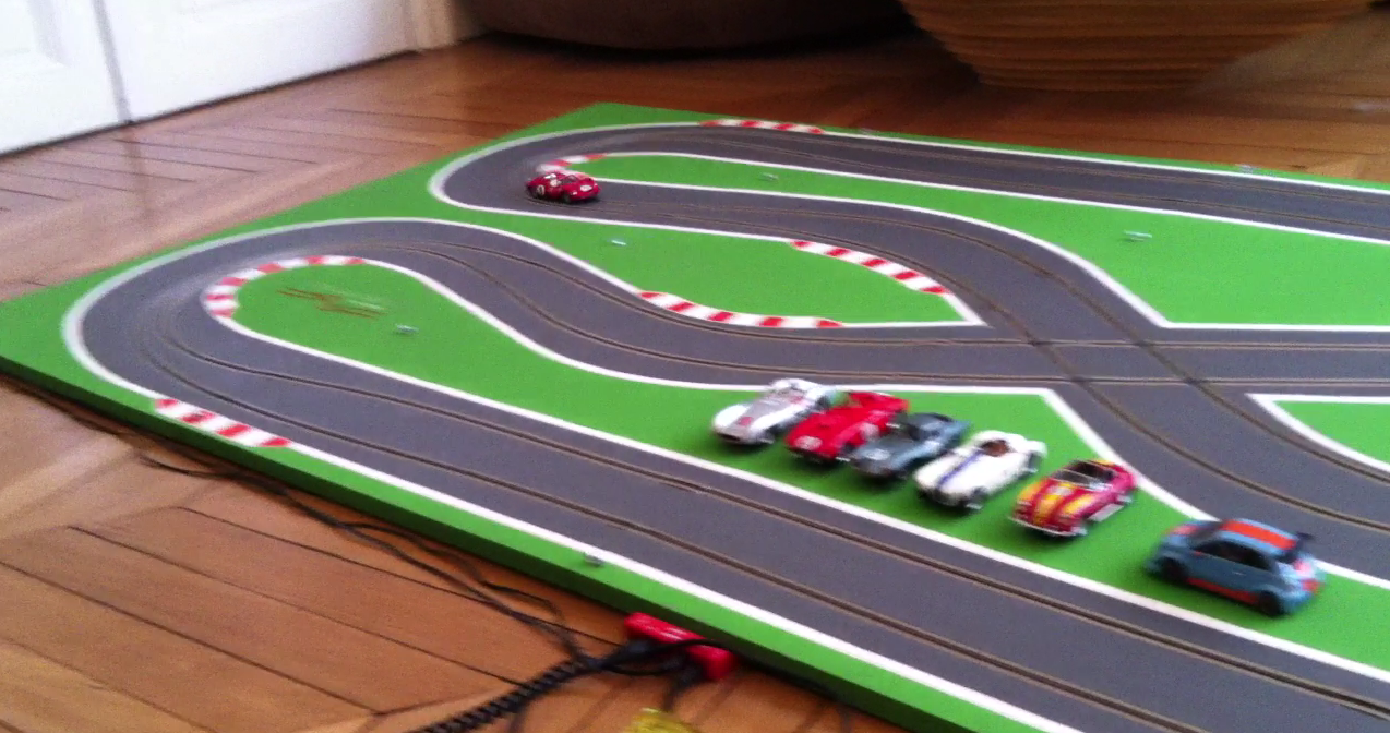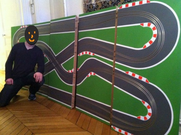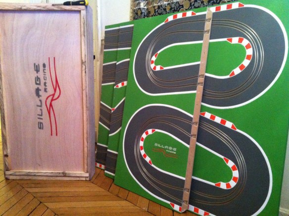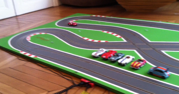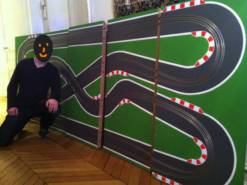 En attendant d’avoir le courage de finir de peindre la piste, je commence les « plantations » : arbres de différentes tailles et buissons…