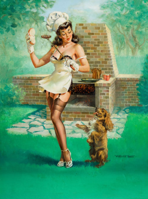 Vaughan Bass est un artiste des années 30, dont le style est proche de celui de Gyl Elvgren. Comme ce dernier, Bass a inspiré les pinups que l’on retrouve en 80mm, par exemple chez Andrea Miniatures.