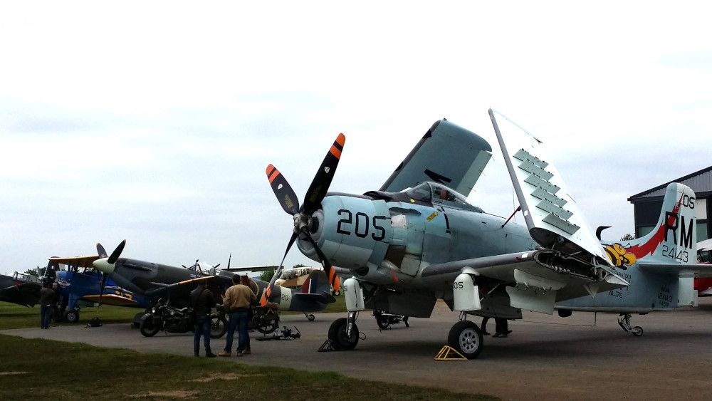 On y rencontre les gens qui aiment les belles voitures anciennes, comme les belles motos et les Harley… et donc les avions, surtout de la période 40-60 – ambiance pinups ! 😉