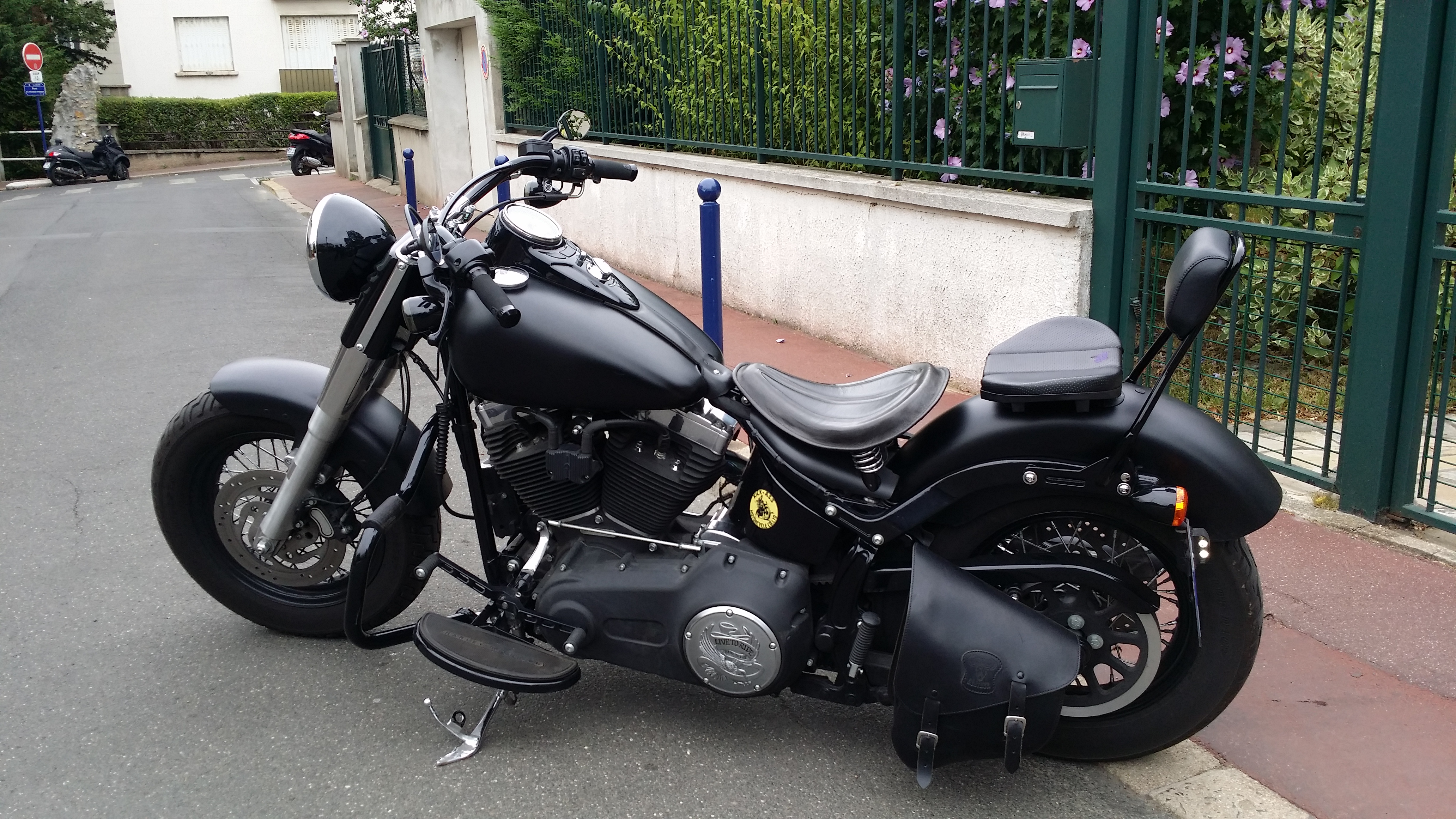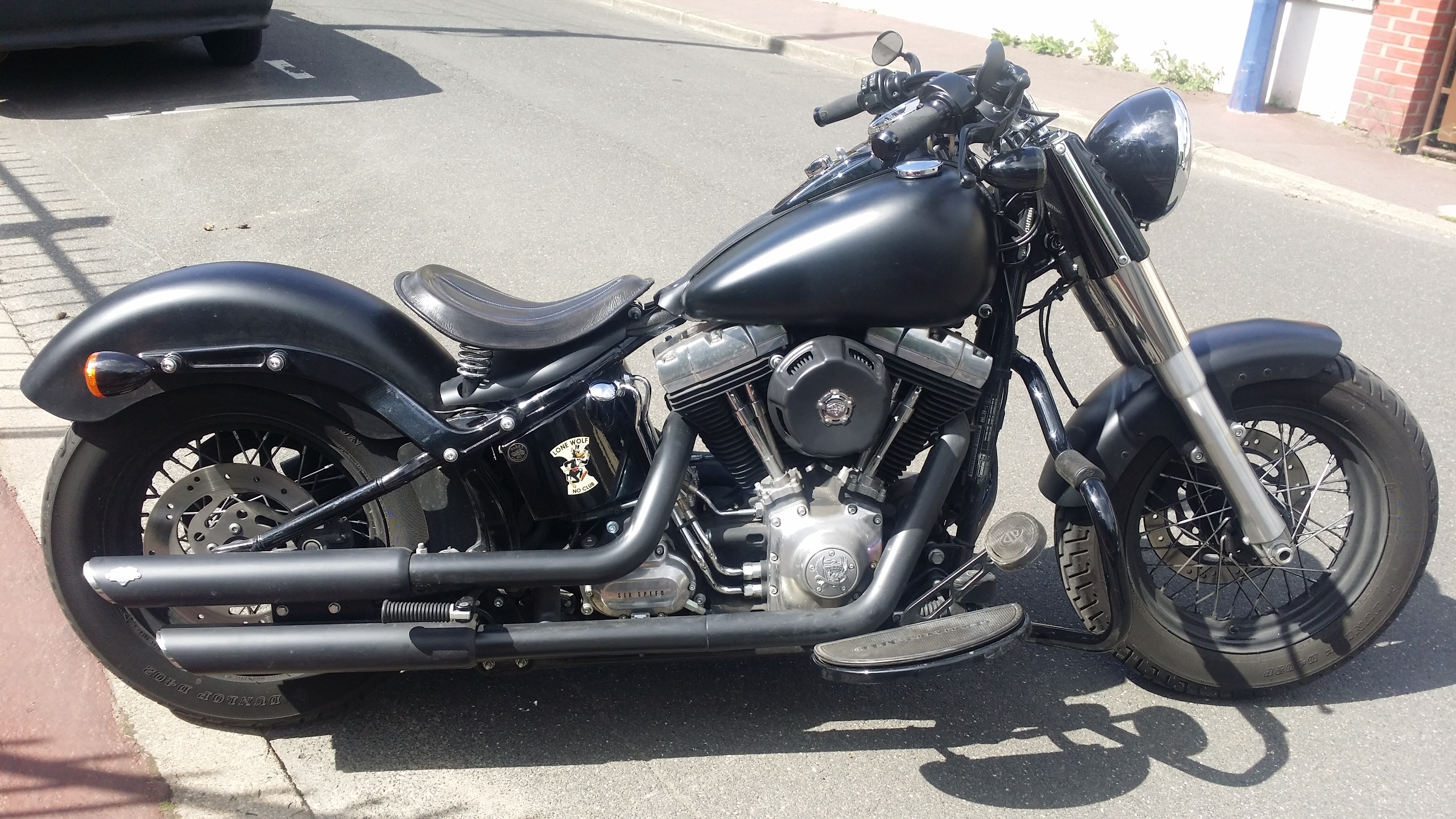 Et voici ma petite dernière (façon de parler, on ne sait jamais, hein ? 😛 ), qui remplace mon Heritage. J’ai déjà expliqué dans l’article de présentation de cette moto (ici) pourquoi et comment je l’avais achetée : un coup de coeur pas raisonnable pour son look rock n’ roll, qui est quand même ce qui m’avait fait acheter une Harley à l’origine, avant de découvrir la très raisonnable Heritage (presque) parfaite, mais pas rock n’ roll 😉