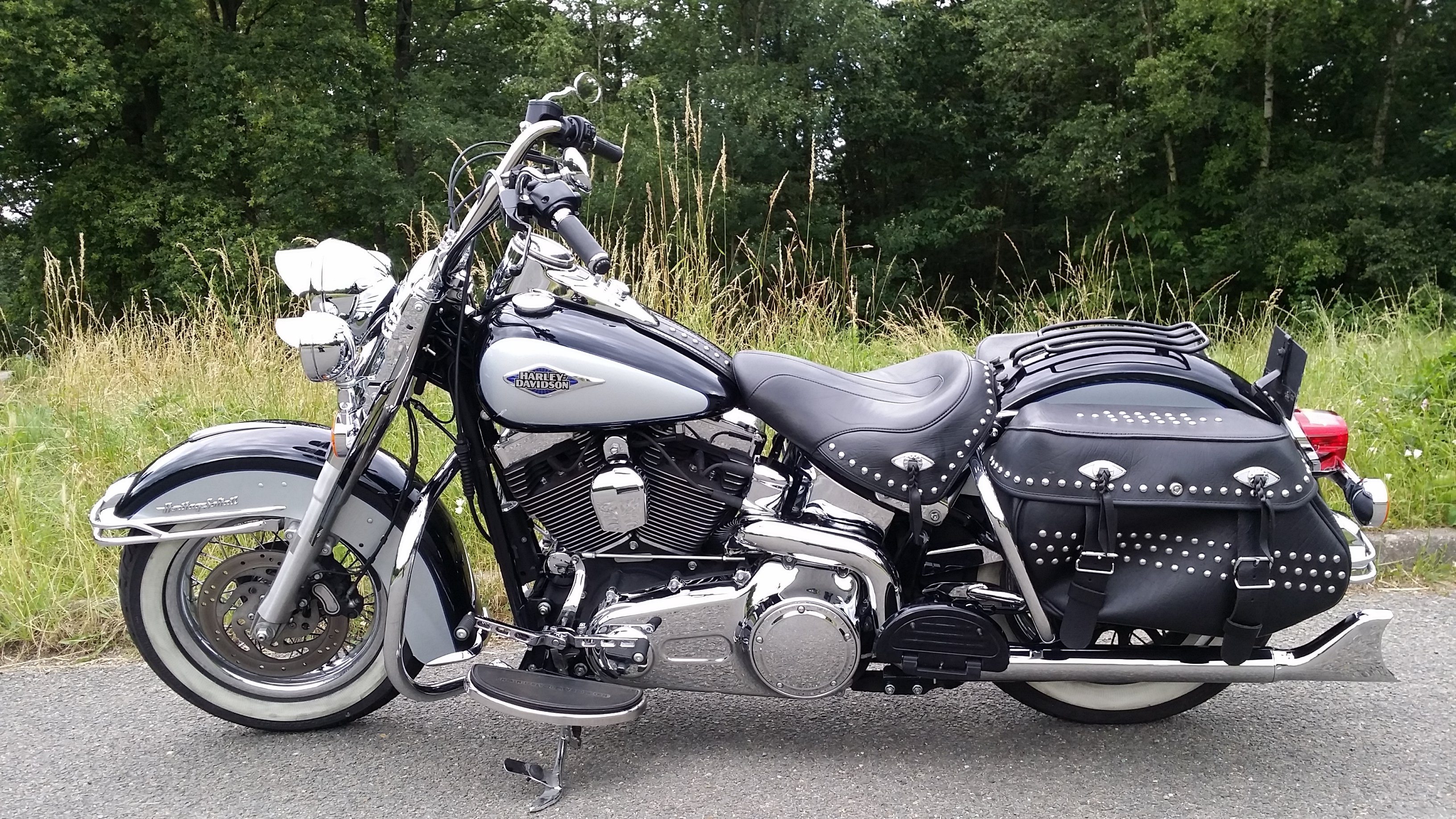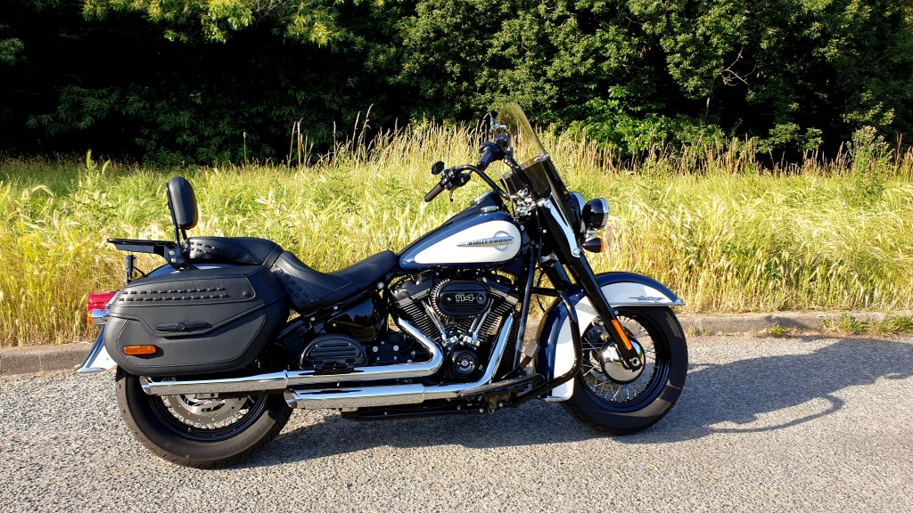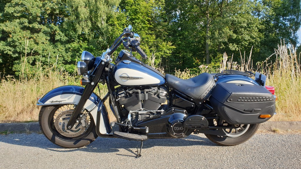 Je suis donc passé au fameux moteur de 114 !! Quelle pèche !! Et avec la « légèreté » (relative, mais légère par rapport au SG !) de l’Heritage : quel plaisir de rouler ! Un Heritage, c’est quand même un beau compromis : du confort, de la protection, des sacoches, un bon moteur, un châssis (désormais) super stable : une bécane extra, modulable à souhait !