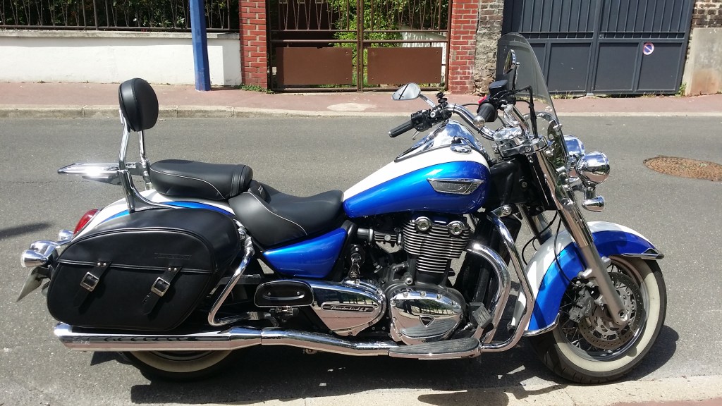 Un jour, j’ai voulu essayer les customs des autres marques et, sur le papier, cette Triumph avait l’air extra… Effectivement, je suis (métaphoriquement) tombé sur les fesses en l’essayant !! Quelle puissance, quelle tenue de route, quelle stabilité en virage !! Ma pauvre Harley ne faisait pas le poids en face. En repartant de l’essai, j’avais l’impression de rouler avec une « ancienne ».