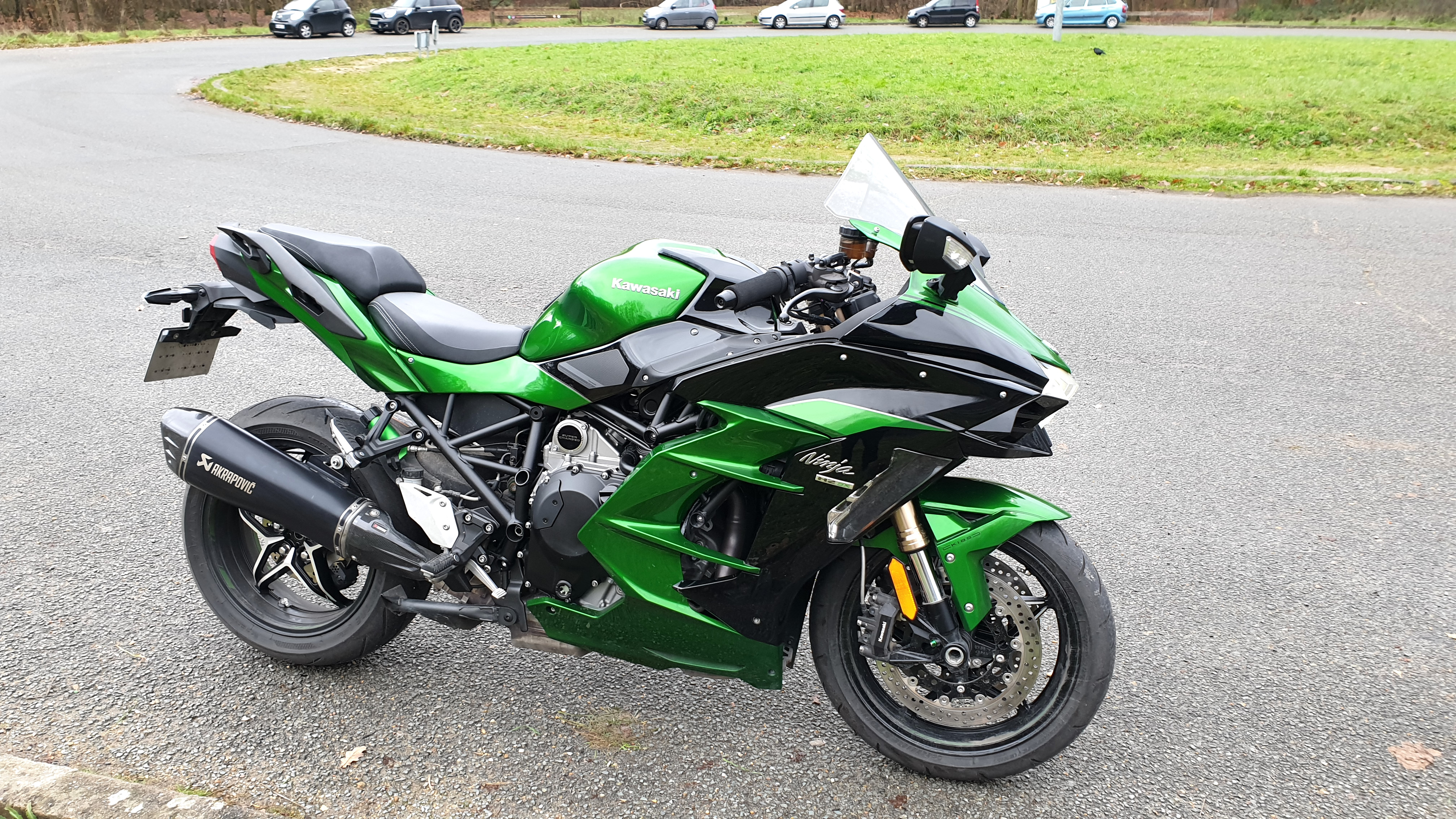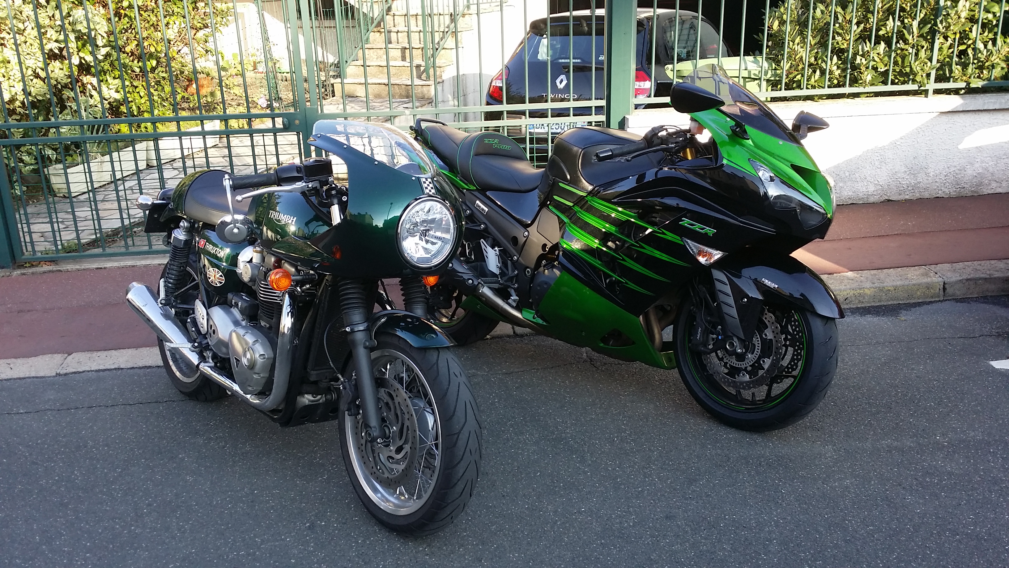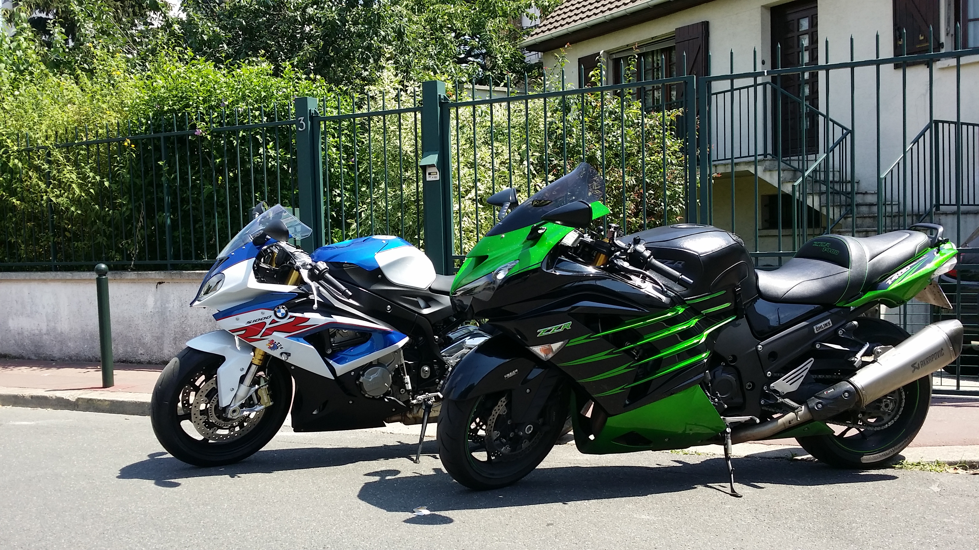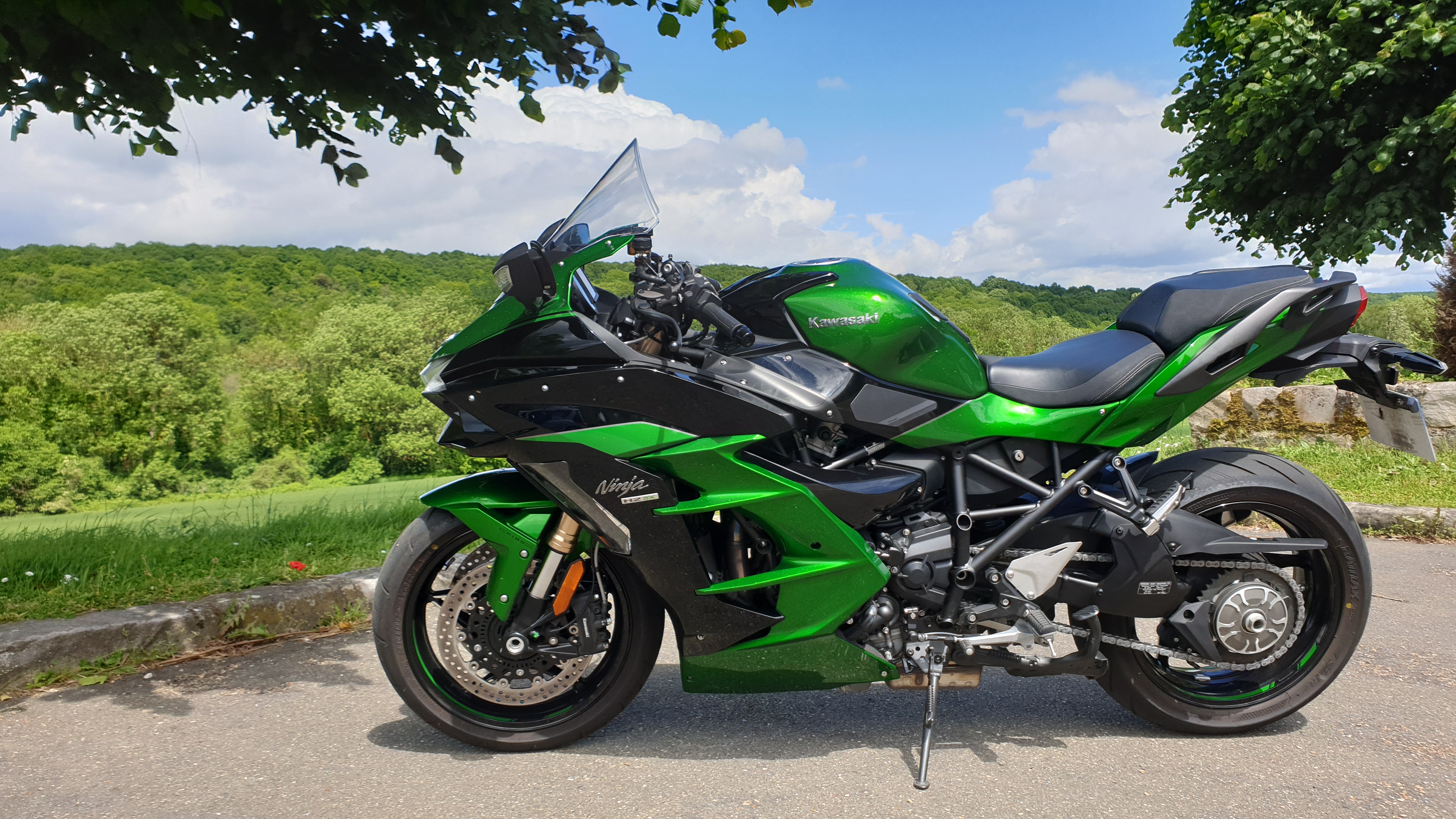 Finalement, j’ai trouvé ma ZZR 1400 « euro4 » de rêve avant d’avoir pu vendre la H2 SX. Pas grave, j’ai sauté sur l’occasion : pile la couleur que je voulais (2016, donc euro3 😦 ) mais immatriculée en 2017, donc… euro4 ! Un miracle !!