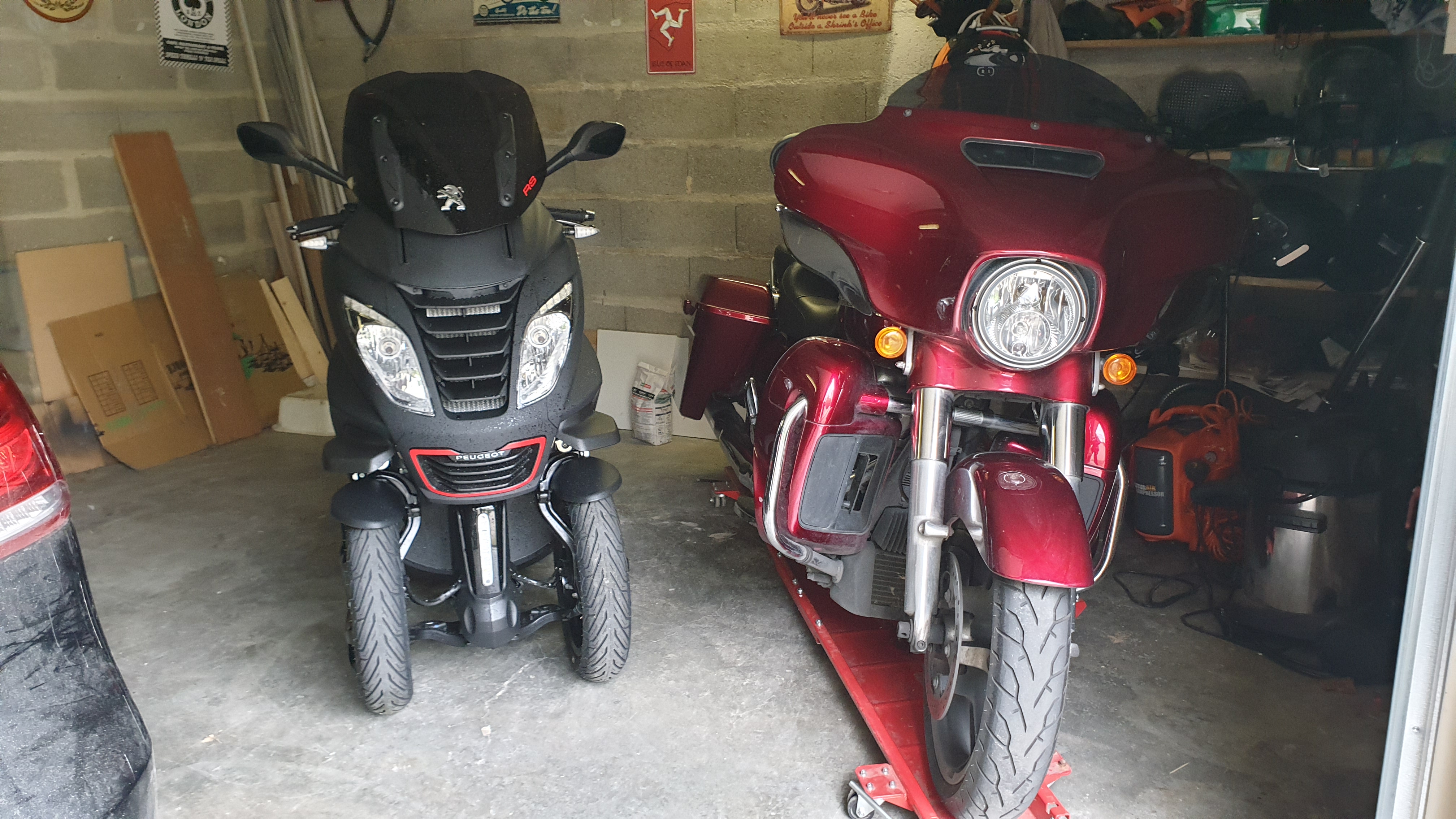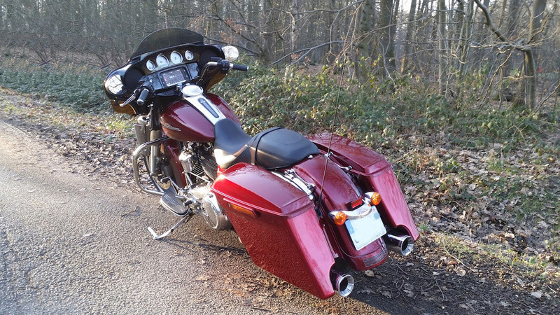 Elle m’a trotté un moment en tête, et puis un jour, un abruti m’a poussé (volontairement !) alors que j’étais sur ma Street Glide toute belle : j’ai zigzagué quelques mètres, sous le choc, et stabilisé la moto, béquillé et suis allé voir le gars, qui s’est fait tout petit derrière son volant… Ne sachant pas où étaient les caméras de surveillance, et avec toute la route stoppée par le mec et moi en travers, j’ai laissé tomber, mais je me suis dit qu’il était dangereux (pour ma belle moto !!) de rouler au milieu de ces tarés ! C’est vrai qu’en ville, ça passait, mais toujours de justesse. La Street Glide étant quand même plus proche du camion que de la moto ! 😀