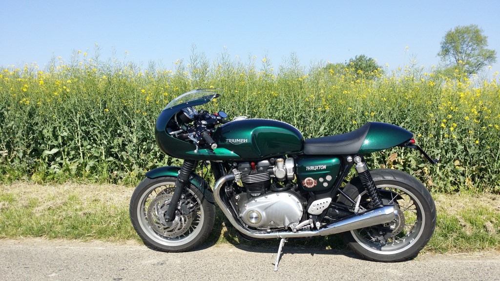 Ayant revendu ma petite Yamaha MT-07 et client Triumph avec la Thunderbird, je me suis fait plaisir avec ce cafe racer « à l’ancienne » (pléonasme !), dont je présente aussi sur ce blog les quelques modifs que je lui ai apportées (cliquez ici).