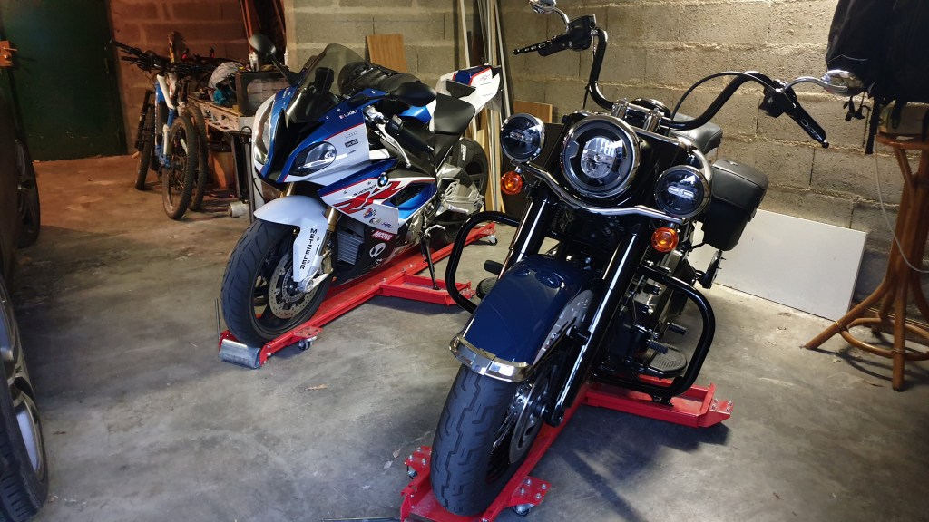 Pour protéger ma belle Harley, je me suis donc trouvé un engin « anti-embouteillages », ultra-léger et passe-partout :