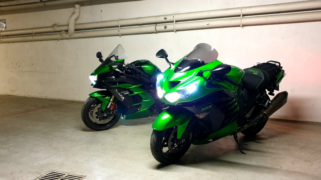 Et là, il s’est passé tout un tas de trucs à la fois : un copain m’a fait essayer une Kawasaki ZZR 1400 : moto mythique mais que je ne pensais « pas pour moi » (trop de puissance !!). Harley a fini par sortir ses modèles M8, en Touring d’abord… Et j’ai essayé une hypersport moderne « juste pour voir »… Et voilà ce qui c’en est suivi…