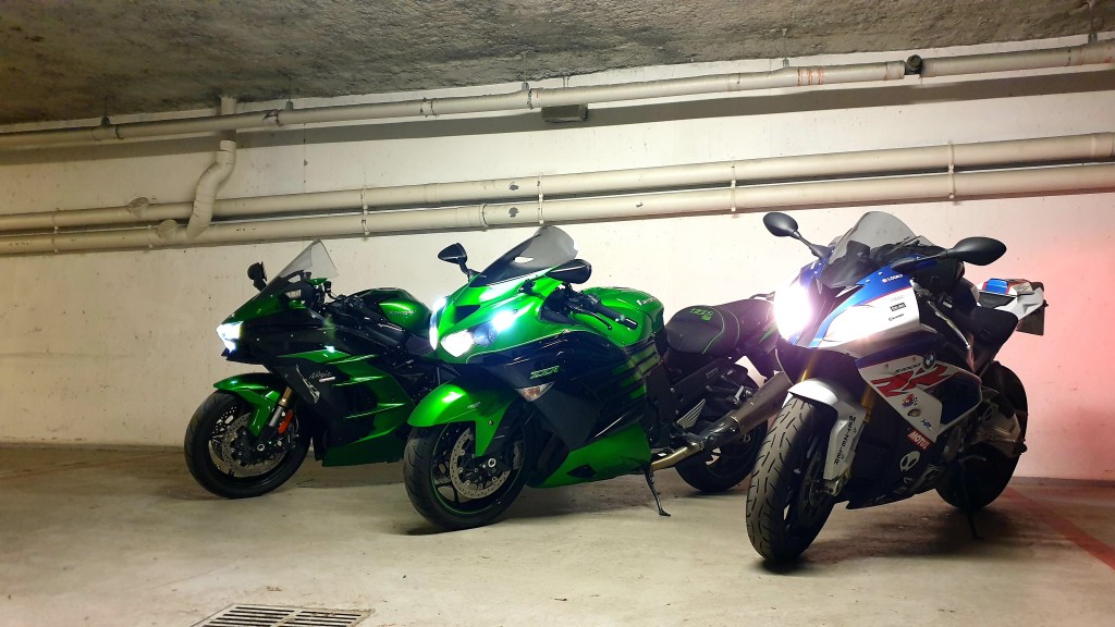 – La ZZR 1400, le Low Rider S et; régulièrement mais moins souvent, la S1000RR (même si je l’adore !). Et j’ai le scoot pour les missions taxi, course, ville, temps de neige, etc.