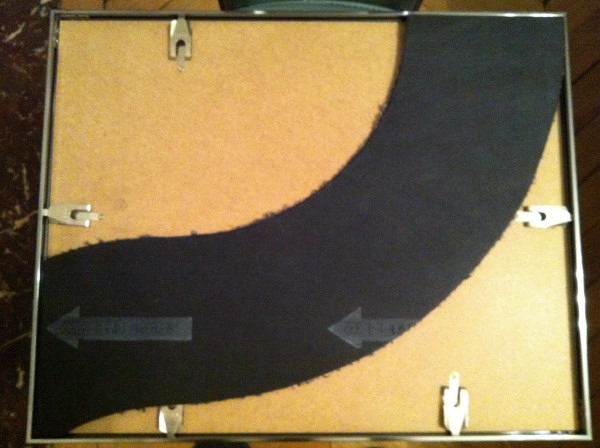 Donc, on commence par poser les grandes lignes dans un cadre de tableau à l’envers. La route est faite avec un morceau de carré de moquette retourné.