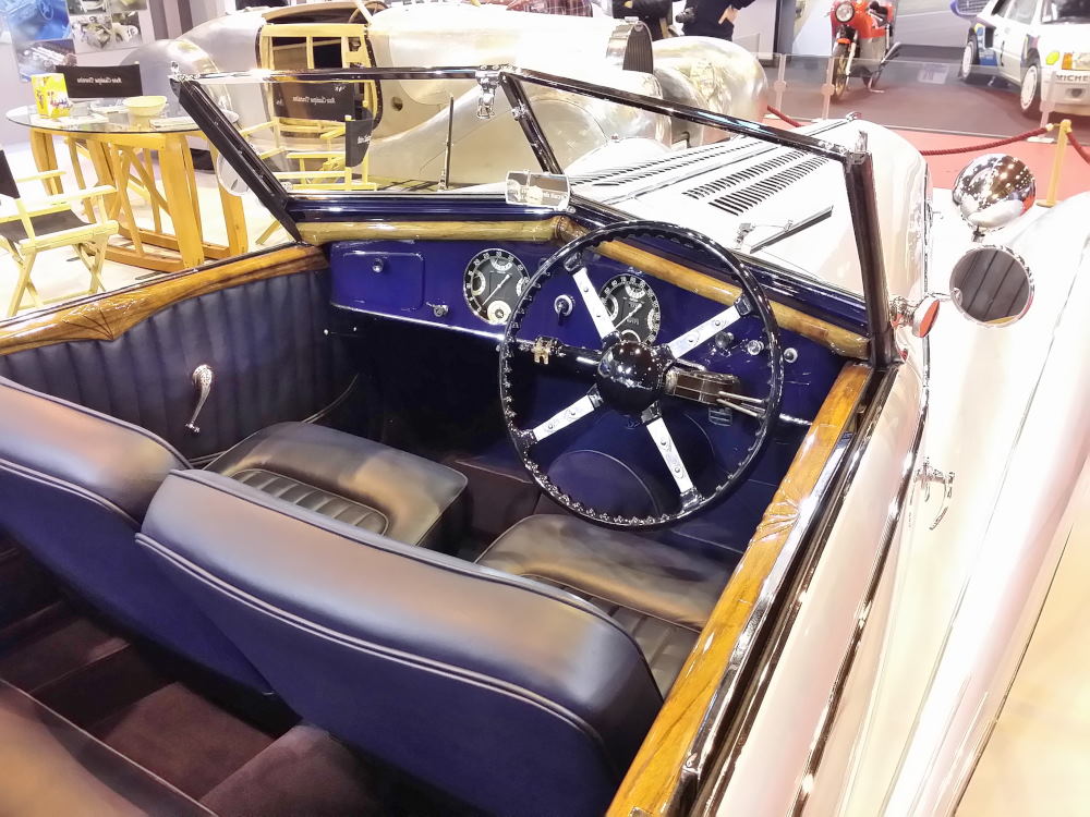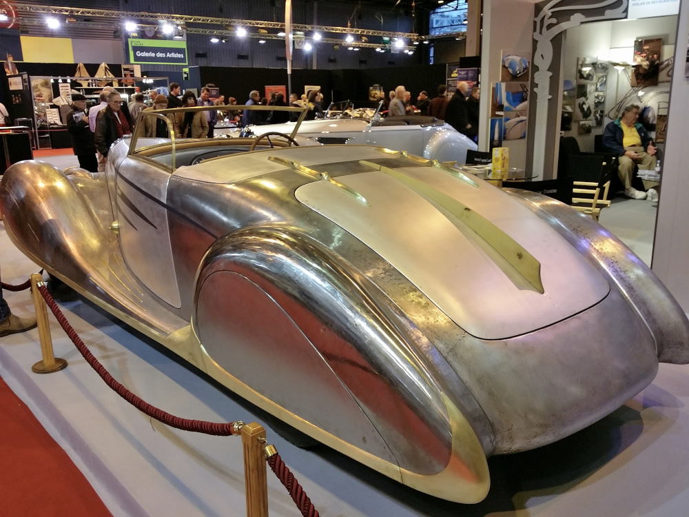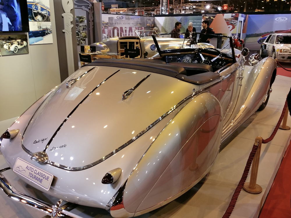 Cette Delahaye 135 MS, carrossée par Figoni, a participé au tournage du film « Le Château de Verre » en 1950 avec Michèle Morgan appartenait à Lucienne Dhotel qui l’avait commandée en 1939. Celle que l’on connaissait sous le nom de « La Môme Moineau » était une chanteuse de music-hall devenue suite à son mariage avec l’entrepreneur sud-américain Benitez Rexach, la femme la plus riche du monde avant-guerre…