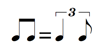 Attention à ne pas confondre avec le trait « au-dessus » qui rassemble un paquet de trois notes. Par exemple, à la troisième mesure, les noires sont rassemblées par 3 : donc on doit les jouer toutes les trois pendant seulement 2 temps !