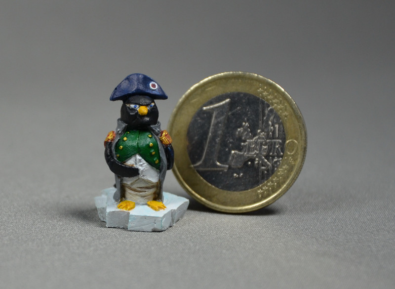 C’était ma première peinture « fantastique » et je n’ai pas pris de photos intermédiaires, donc voici l’Empereur Pingouin achevé :