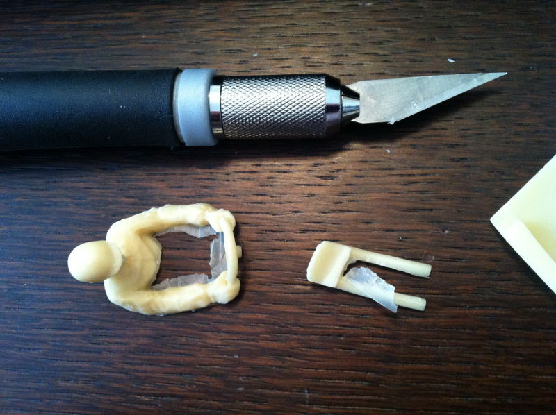 J’ai choisi facile pour débuter, car la carrosserie était déjà peinte et il n’y aura pas de pare-brise compliqué à poser. Il faut donc commencer par ébavurer les pièces en résine…
