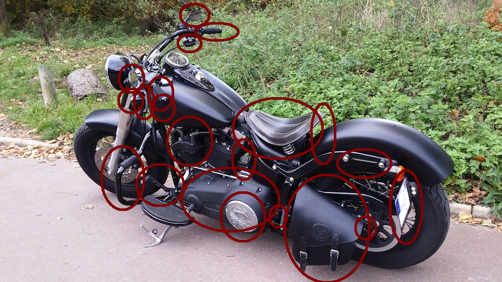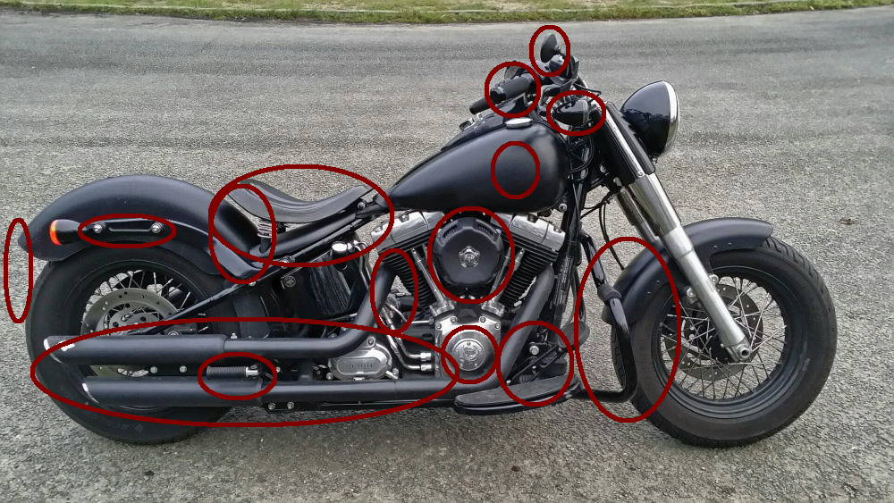 Passage en revue des personnalisations de mon Softail Slim 2013 :