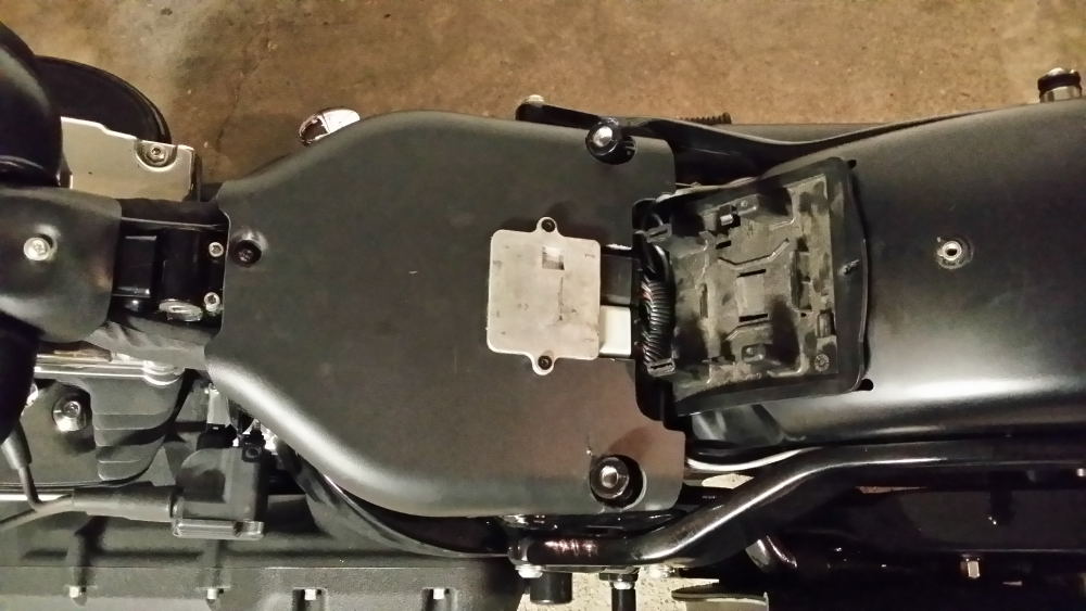 The only flaws that will lead to the biggest of my mods on the Slim: the horrible plastic cover from ECM (electronic box for injection, embedded in the rear fender)… and oddly recovery position forward of the saddle.