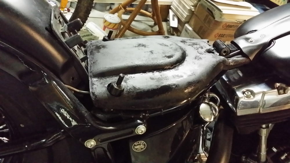 Les amis, voici la fin des modifs sur mon Slim : à l’épisode précédent, nous avions vu comment installer une selle ressort plus basse et plus en arrière que l’originale. Voyons maintenant comment parachever le tout en masquant l’horrible trou laissé par l’ECM dans le garde-boue arrière… sans utiliser le cache moche Harley, en plastique !