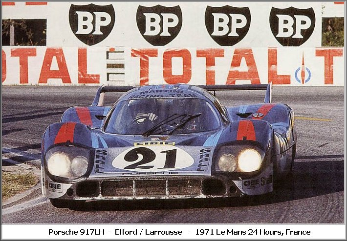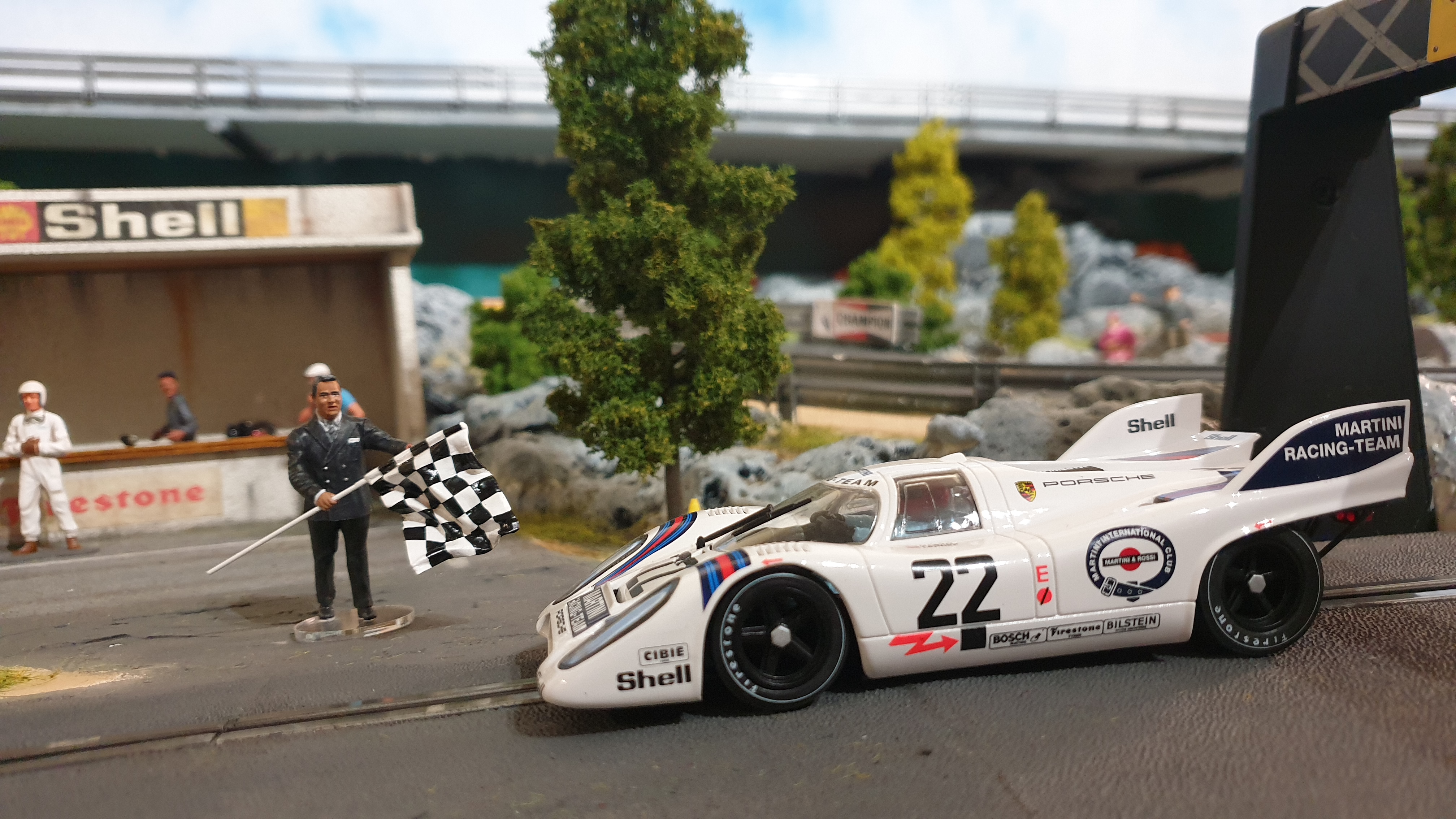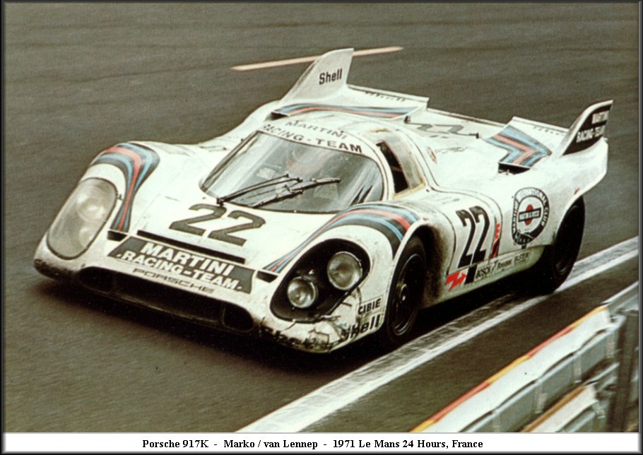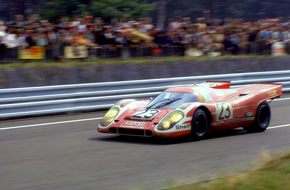 La Porsche 917 Lang Heck #17 qui a battu (à quasi égalité avec la #18, à quatre dixièmes près !!) le record du tour, qui restera invaincu jusqu’en… 2015 !!! Certes, le tracé a changé entretemps (il prend 171m, mais il est peut-être moins rapide ??). Quand même !