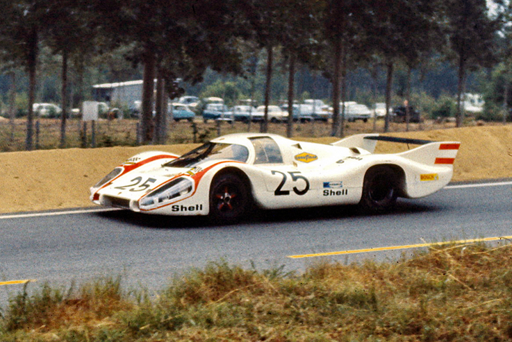 Dès la 8ème heure, la Porsche 917 LH #21, autre voiture légendaire, devait abandonner. Reconnaissez-vous sous cette peinture la Porsche #25 LM70 ? Eh oui, c’est la même voiture (châssis 042) 🙂