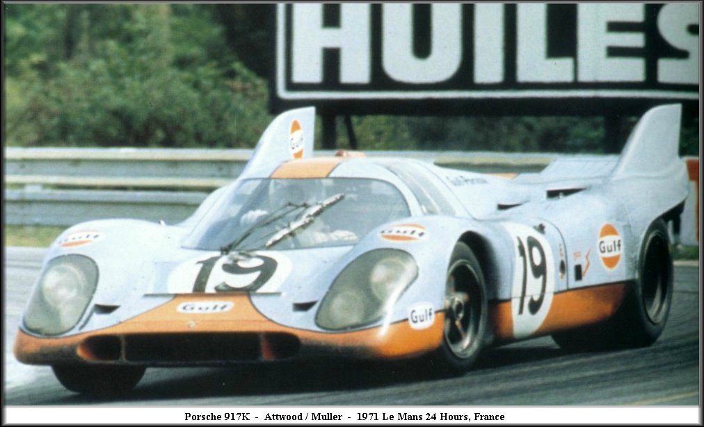Trois heures avant, la Porsche 917 Lang Heck #18, co-détentrice du record du tour (avec la #17), avait abandonné (fuite d’huile)… Elle fut la plus rapide de 4″ avec un tour en 3’18″4, soit une moyenne de 244,397km/h !! Mais aux essais, Jackie Oliver avait explosé le record du tour avec un chrono de 3’13’6, ce que son co-pilote Pedro Rodriguez refera pour gagner la pôle avec un tour « facile » à 3’13’9 !!! Record invaincu à ce jour, 50 ans après !!