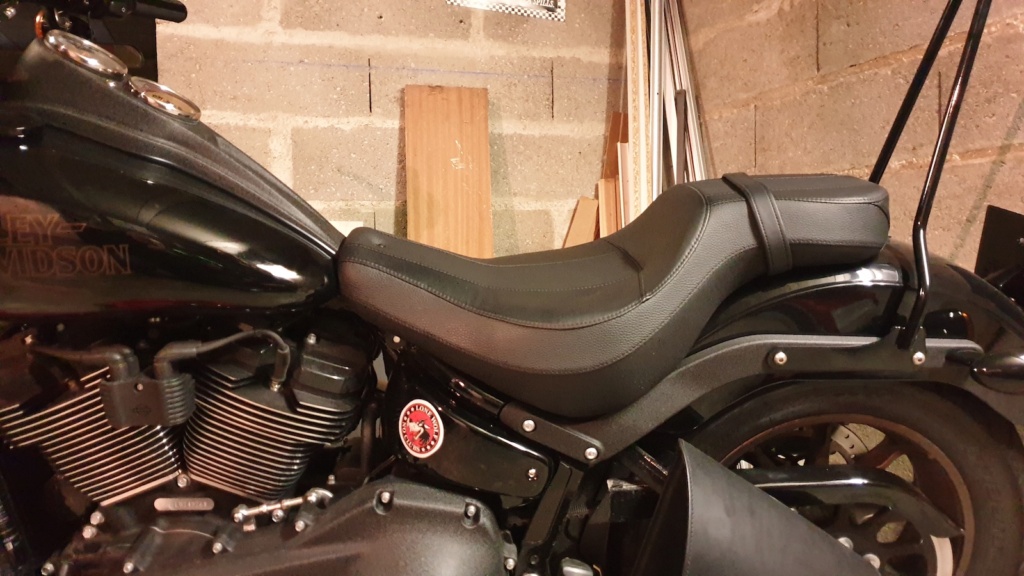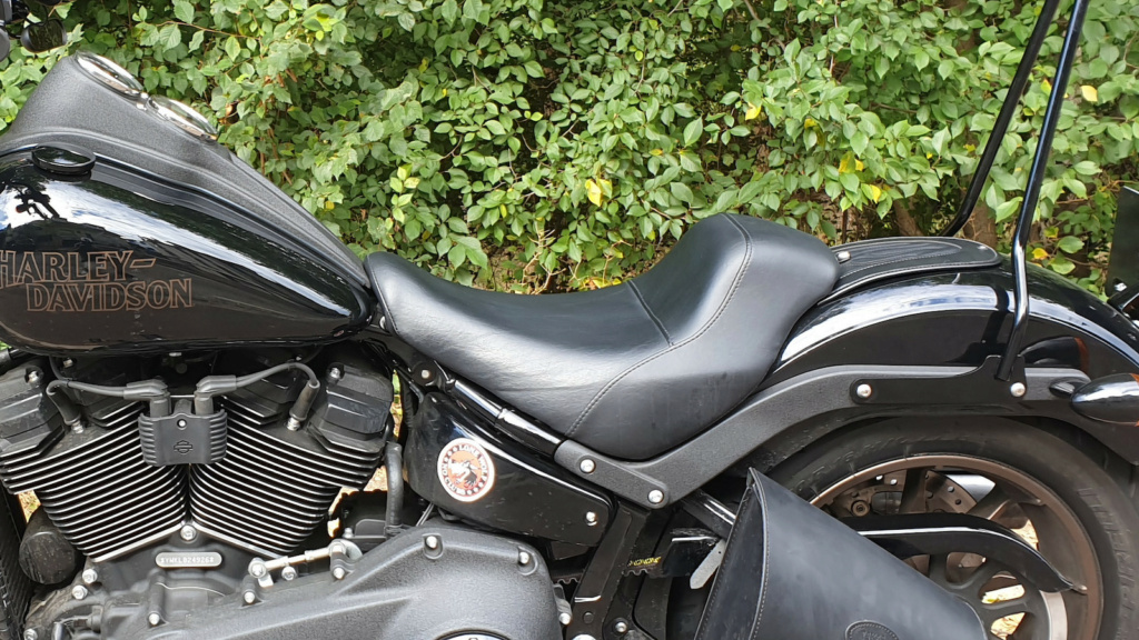 Et j’ai enfin fini par recevoir la selle double, commandée par force pour avoir la carte grise duo. Harley n’en propose pas de « normale » (bizarre !), donc on a le choix entre « Reach » (pour les petits) et « Tall » (pour les grands). C’est ce que j’ai pris…