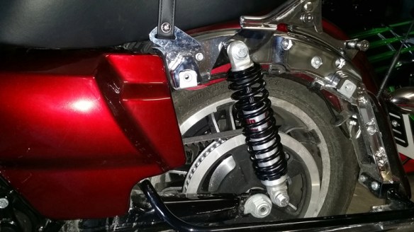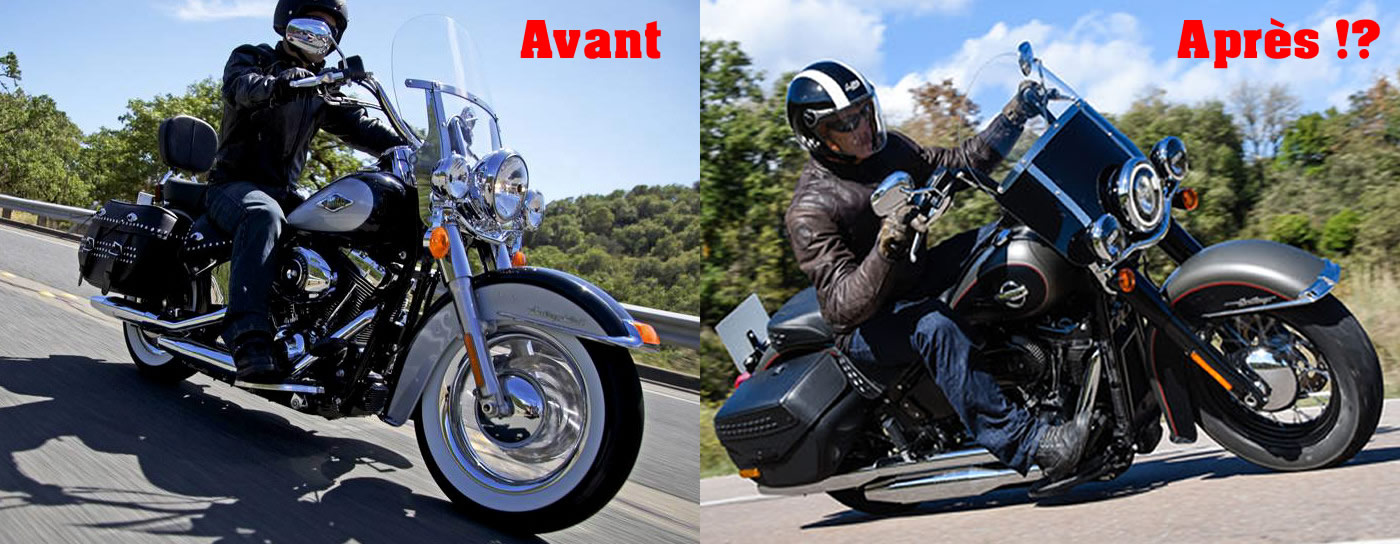 Ensuite vient le plus beau : les sacoches rallongées !! Achetée chez Advanblack.com, une équipe très sympa, aux USA (hello Sam !), réactive, et surtout des sacoches qualité HD pour une fraction du prix HD !! (Moins de 600 euros au lieu de… 3200 chez Harley !!!!)
