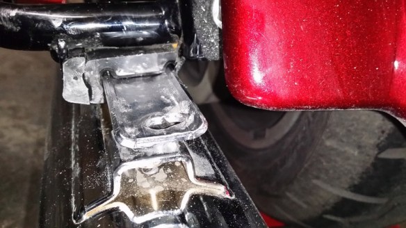 Prochaine étape : le garde-boue arrière rallongé + feu tri-bande (en bas du garde-boue) + feux de sacoches, pour qu’on me voit bien lorsque je freine ! 😉