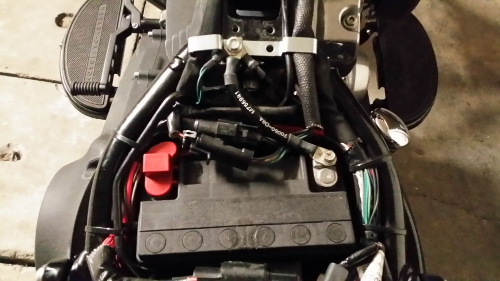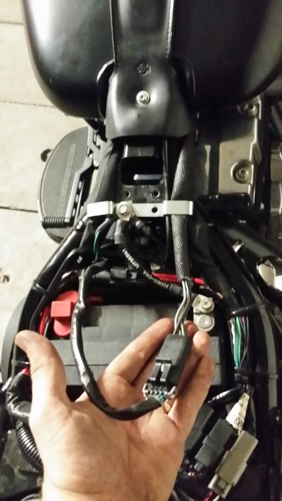 Le premier kit que j’avais reçu comportait une grosse prise, où l’on devait faire des soudures, etc. Bref, un casse-tête ! Moyennant finance, DK m’a envoyé un autre câble, qui se connecte simplement sur la moto… Mais, pourquoi vendent-ils encore l’ancien !!?